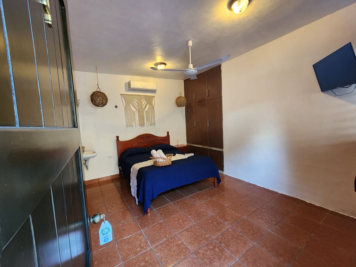 舒適的房間,配有雙人床,非常適合情侶或單身旅客。 它有冷氣、免費WiFi和私人浴室,並有熱水。 在住宿期間,你可以在花園享受吊床,並免費使用單車。 靠近商店、餐廳,步行3分鐘即可抵達ADO巴士站。 非常適合在Bacalar舒適和實用的住宿。
