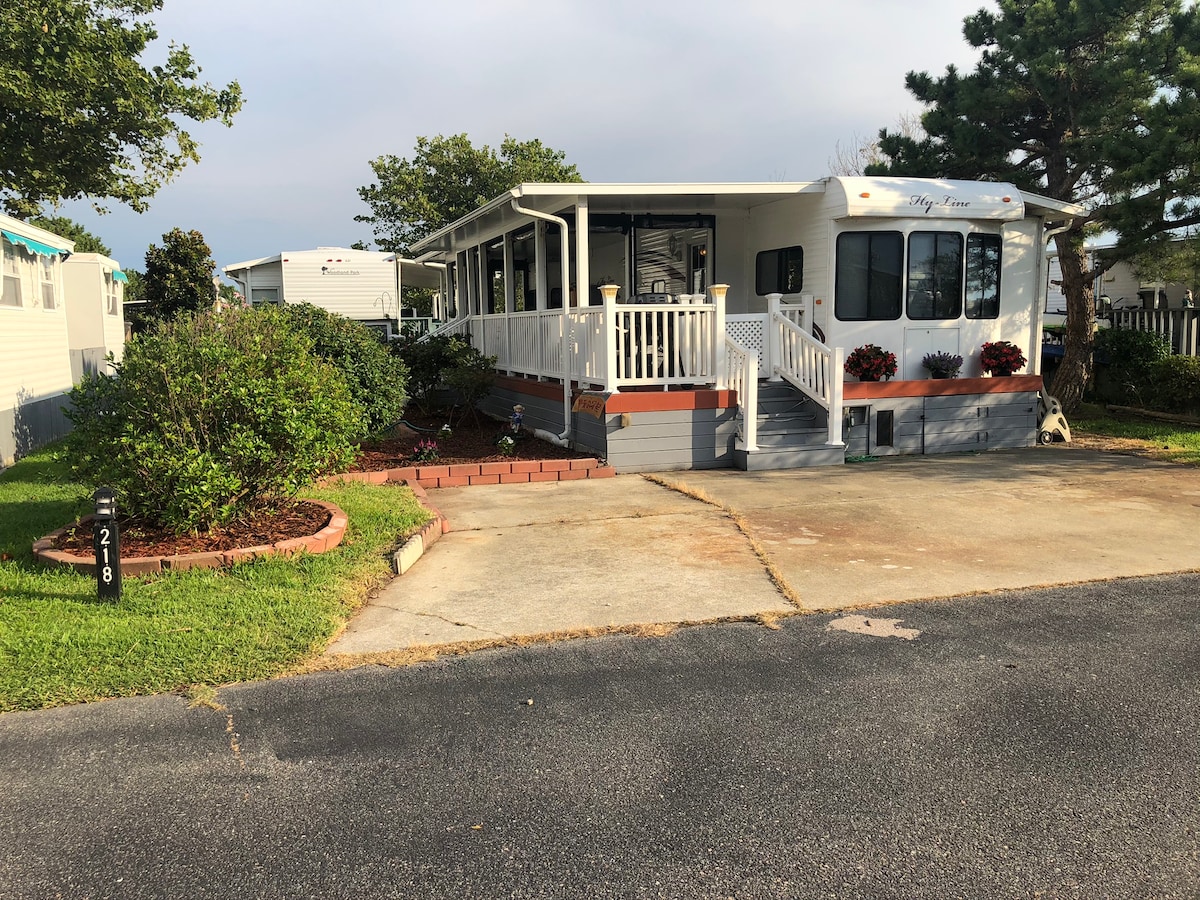 ** 2025 年新翻修**。 Trident Cottage是一個2臥室1浴室的移動房屋,位於後灣的海濱地段……步行5分鐘即可抵達海灘。 我們不收取額外費用,包括在海灘度假所需的一切! 所有床單、沙灘毛巾、沙灘推車、椅子、帳篷和冰箱。 只要帶上泳衣和人字拖就行了! 我為您提供2輛海灘巡洋艦自行車,不需支付額外費用。 有度假村設備供您使用。