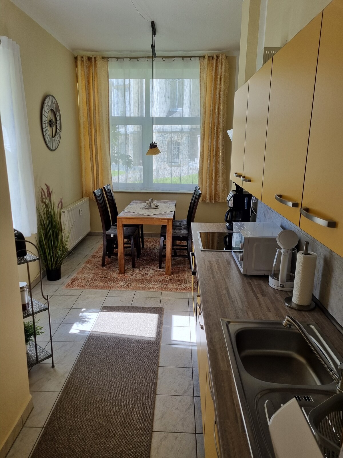 巴德埃尔斯特尔度假旅居的廚房、WiFi和泳池深受人客喜愛