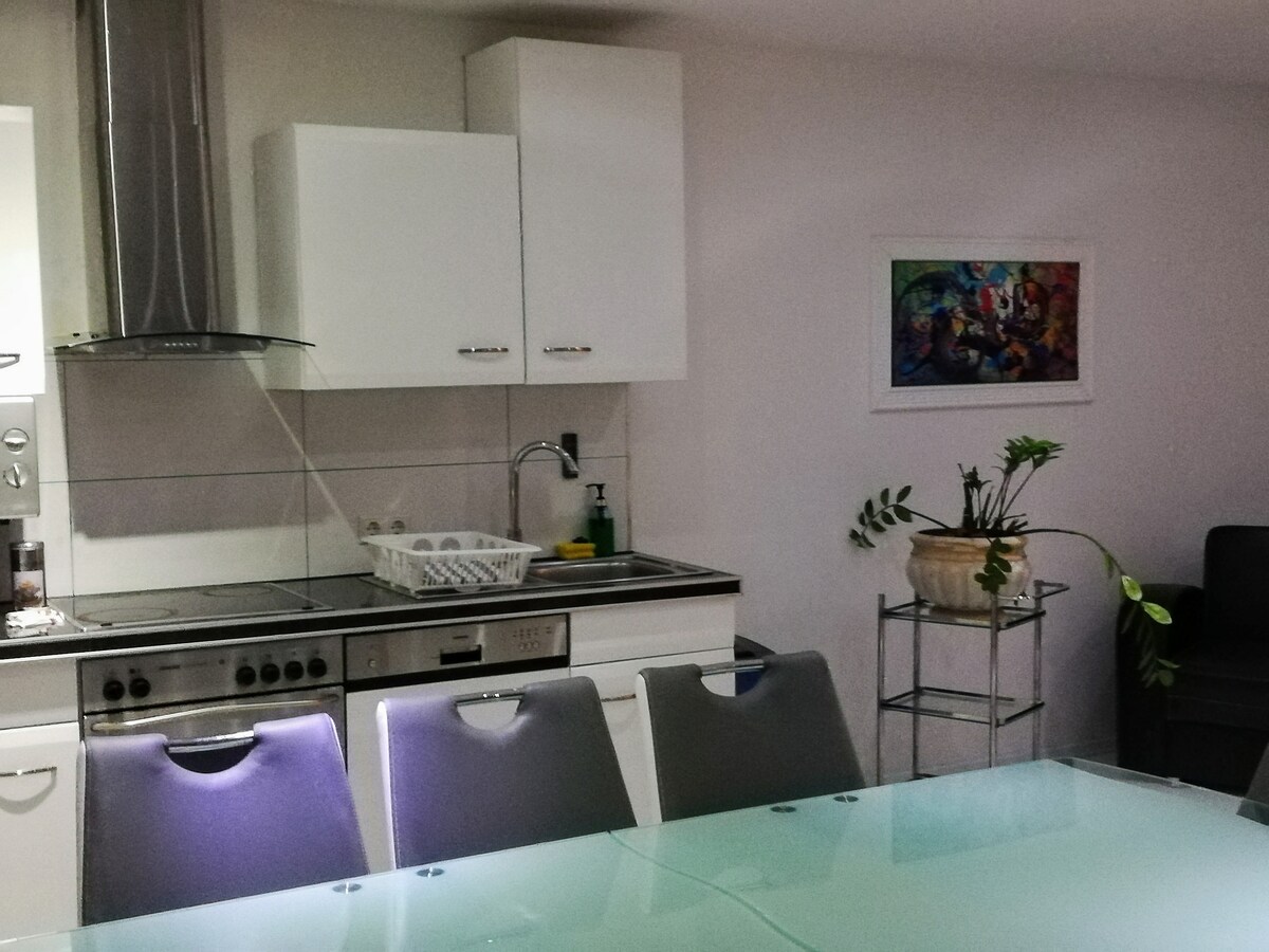 Ettenheim Im Osterbach, sehr Ruhig gelegen 1 Schlafzimmer mit einem Boxspringbett 1,8 x 2,0 ,2 Stühle und Kleiderschrank. 1 Schlaf/ Wohnzimmer mit einem Boxspringbett 1,8 x 2,0 sowie Schlaf-Couch 1,4 x 2,0, Wohnzimmer Tisch, Schreibtisch und 43 Zoll TV 1 vollausgestattete Küche mit Spülmaschine, Microwelle , Esstisch u. 6 Tresen Hocker Bad mit Badewanne und Glasduschabtrennung Flur mit Garderobe u. großem Spiegel Ladestation für E-Auto auf Anfrage Ladekabel Typ 2