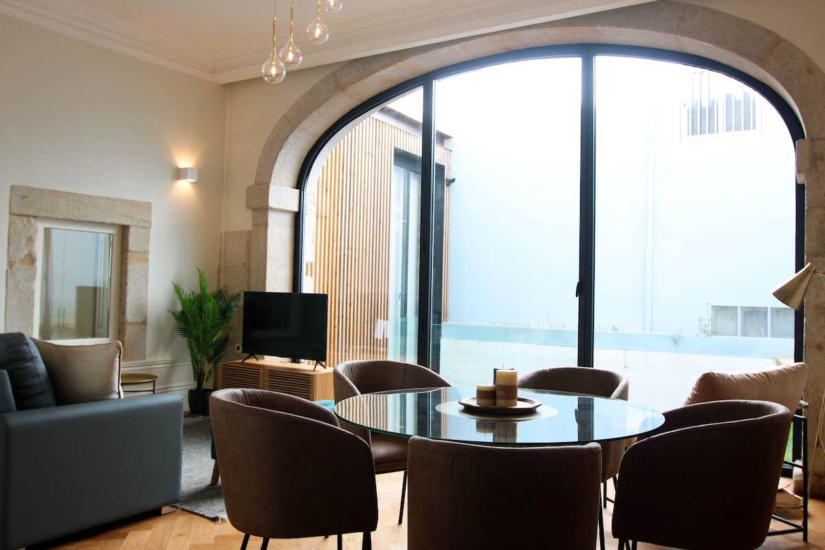 Apartamento estúdio, situado no primeiro andar de um edifício tradicional centenário, com todas as comodidades modernas para uma estadia confortável. Esta localizado a menos de 300 metros ( 5 minutos a pé ) da estação de metro “Combatentes” com acesso rápido, fácil e confortável ao Centro Histórico. ( Viagem 6 a 8 minutos até Aliados / Centro Histórico ) Tem um espaço ao ar livre, com uma piscina privada, coberta e aquecida ( De final Setembro a Maio ), partilhado com os restantes hospedes