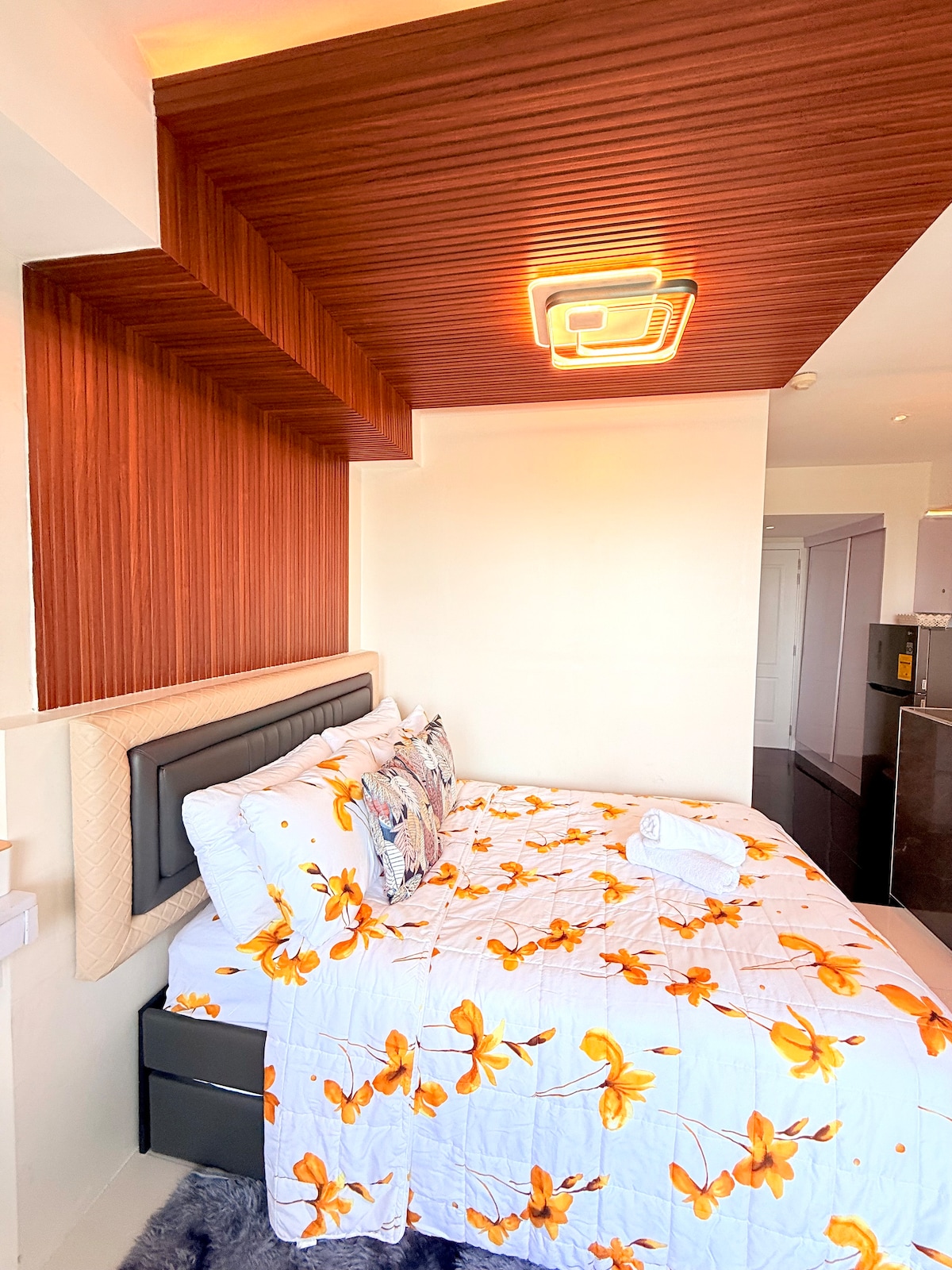 設備齊全、值得拍照、舒適時尚的34平方公尺、2間臥室公寓角落單位,配有超棒的陽臺,您可以放鬆身心,慶祝重要活動,或與家人或朋友一起快速度假,享受獨特的世界級設施,如波浪池、人造白色海灘、兒童遊樂場、籃球場、健身房、排球場、海灘酒吧、天空花園等。步行5分鐘即可抵達購物中心(SM Bicutan),距離尼諾·阿基諾國際機場(NAIA Airport)僅10-15分鐘。