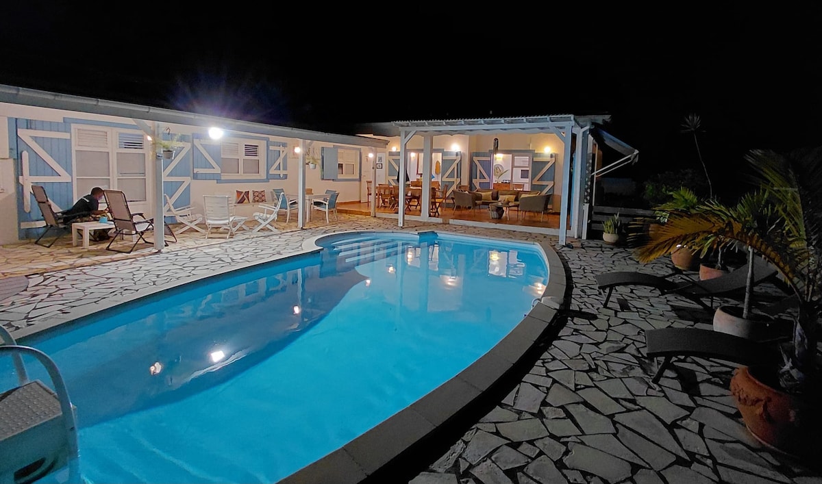 漂亮的平房,位於我們別墅的熱帶花園中。 我們希望您有賓至如歸的感覺,擁有整潔的裝飾、柔軟舒適的加勒比氛圍,以及我們在旅程中喜歡的所有舒適設施:優質的牀上用品、空調、儲物空間、扶手椅和牀可供閱讀,以及設備齊全的小廚房( nespresso咖啡機、烤麵包機、微波爐... )。 進入主屋的泳池