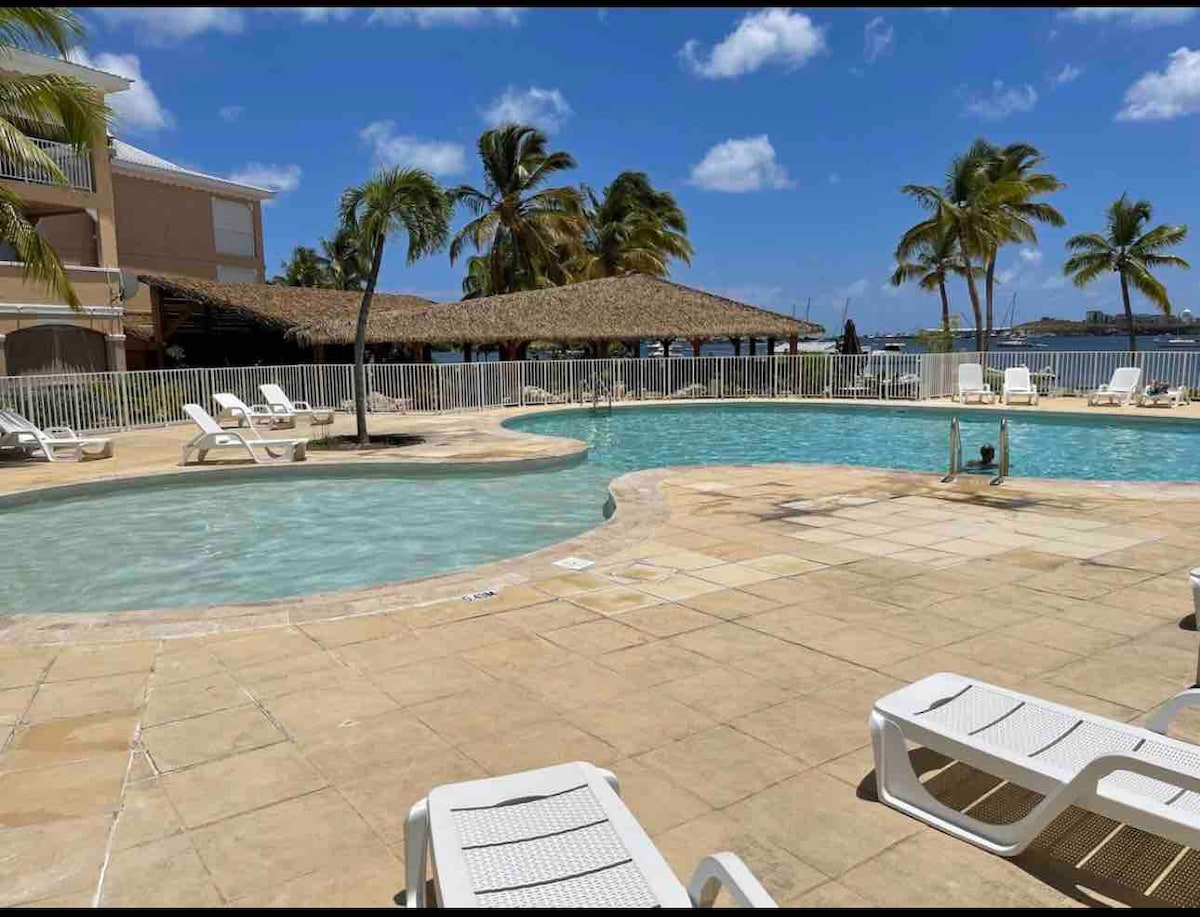 地理位置非常好的單間公寓,靠近海邊的Nettle Bay Beach Club。 露台、4個挖掘泳池、網球場。 設備齊全的小廚房,配有濃縮咖啡機、微波爐、爐具和洗衣機。 大床。步行4分鐘即可抵達美食市場、藥店、麵包店和餐廳。 距離機場15分鐘,距離Marigot及其公共市場和新鮮魚類7分鐘。 附近有37個海灘中的幾個:Maho、Mullet、Baie Rouge、Baie Longue。
