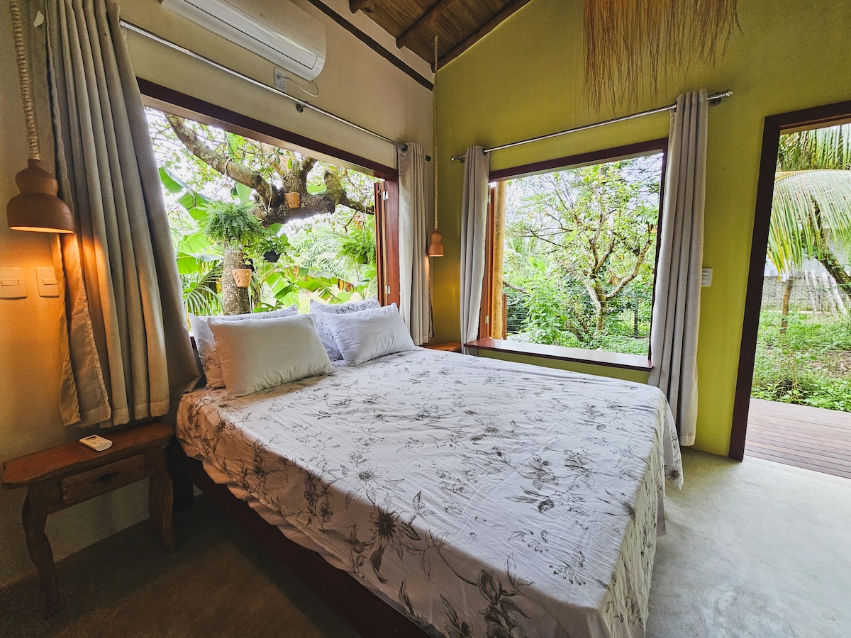 Cabana Empipada no Canto do Moreré 位於距離海灘 15 公尺的海濱原生大西洋森林中。佔地15,000平方米,共有7套住宅,彼此距離遙遠,確保充足的隱私。小屋有一間配有蚊帳的臥室、浴室和迷你吧。非常適合個人或夫婦探險,與大自然接觸 與當地動植物的獨特體驗。我們有自己的圖書館、Wi-Fi,歡迎攜帶寵物,但需提前通知!