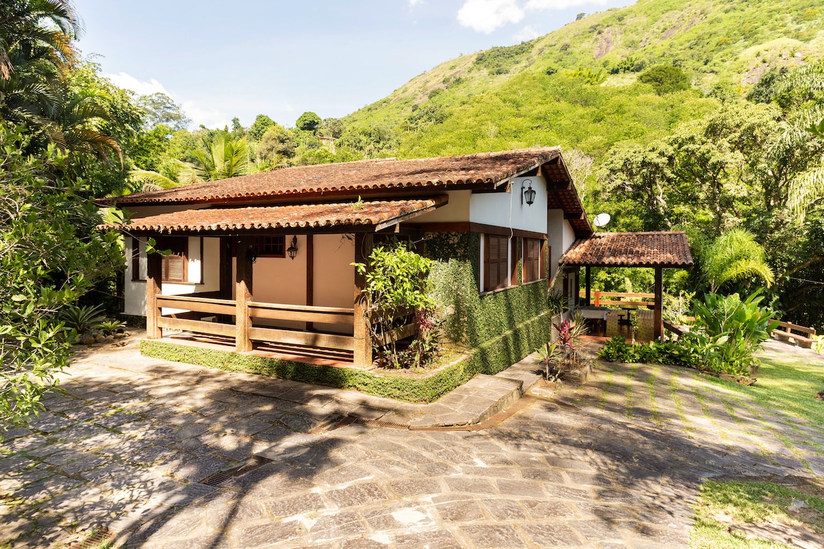Miguel Pereira的美麗小屋,有4間套房和綜合空間,配有廚房、燒烤、電視、客廳和休閒空間。 超級舒適的氛圍,周圍是迷人的鄉村。 非常適合尋找放鬆環境的家人和朋友(最多18位成人)的會議,同時靠近市中心(開車3分鐘或步行10分鐘)。 泳池、燒烤、撞球和乒乓球桌、排球和足球。 Wi-Fi。可選廚師/管家。