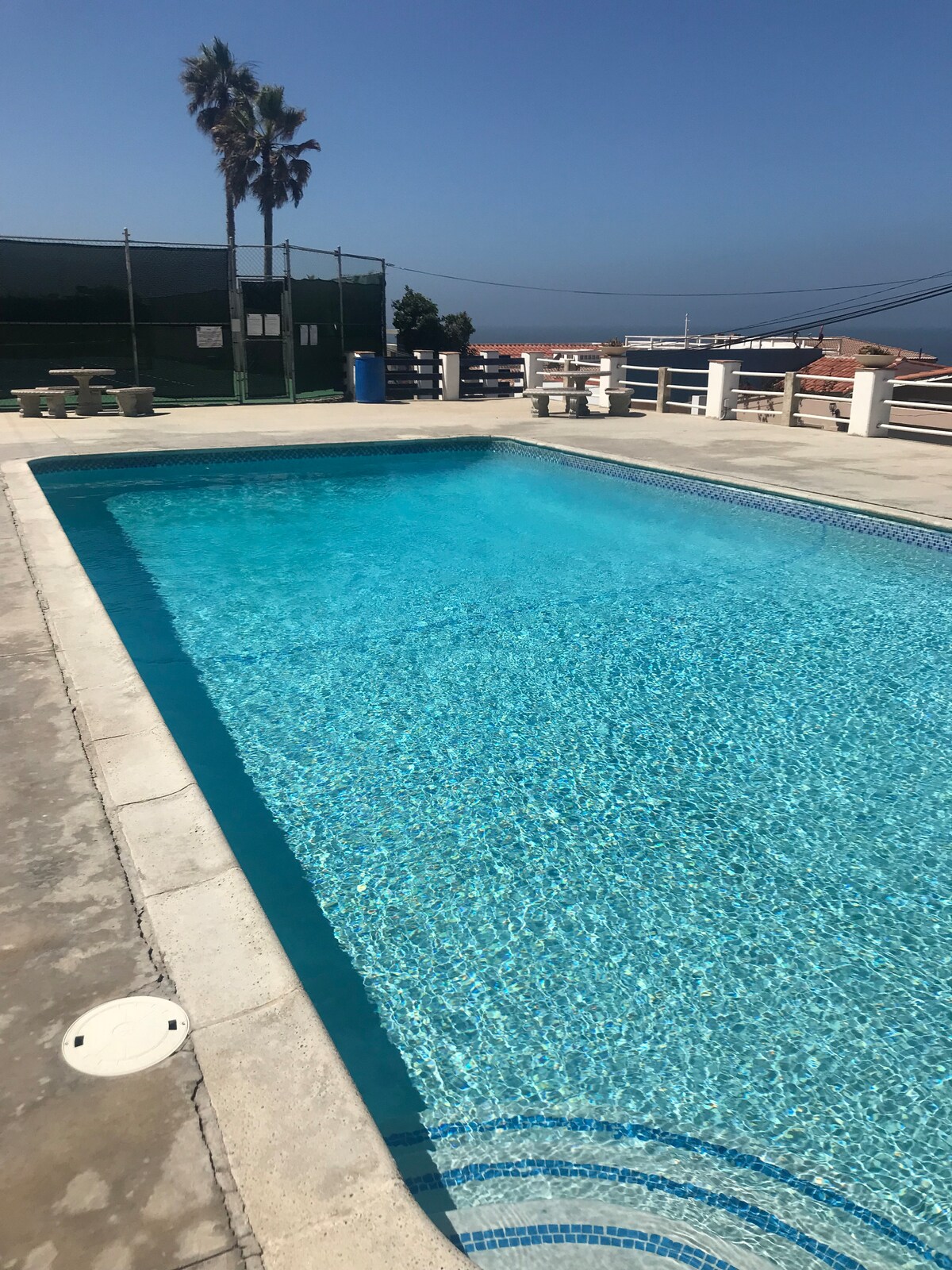 IDEAL FOR A COUPLE. Exclusive parking place, terrace and outdoor dinning table with an amazing ocean view. Across the road from the famous surfing beaches San Miguel and Tres Emes. Also in front of LA CASA DE LOS 7 PATIOS. At the entrance of Ensenada Bay and the WINE ROUTE. A traditional Mediterranean villa, 60 miles South of SAN DIEGO, in a quiet, elegant and very secure neighborhood.