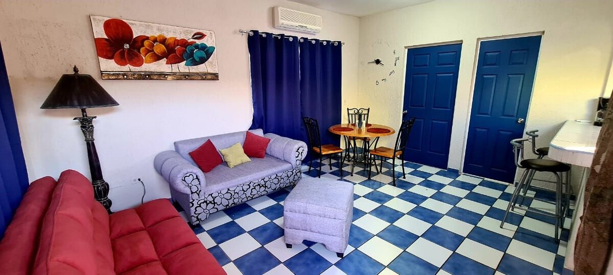 獨立部門,配備舒適愉快的住宿所需的一切,臥室配有標準雙人床、32吋智能電視、Netflix、Prime Video、WiFi、冷氣。 客廳配有沙發床、冷氣、早餐吧、雪櫃、爐、微波爐、烤麵包機、咖啡機和基本廚房用具,浴室配有毛巾、香皂、洗髮水和吹風機……是家庭或工作度假的理想場所