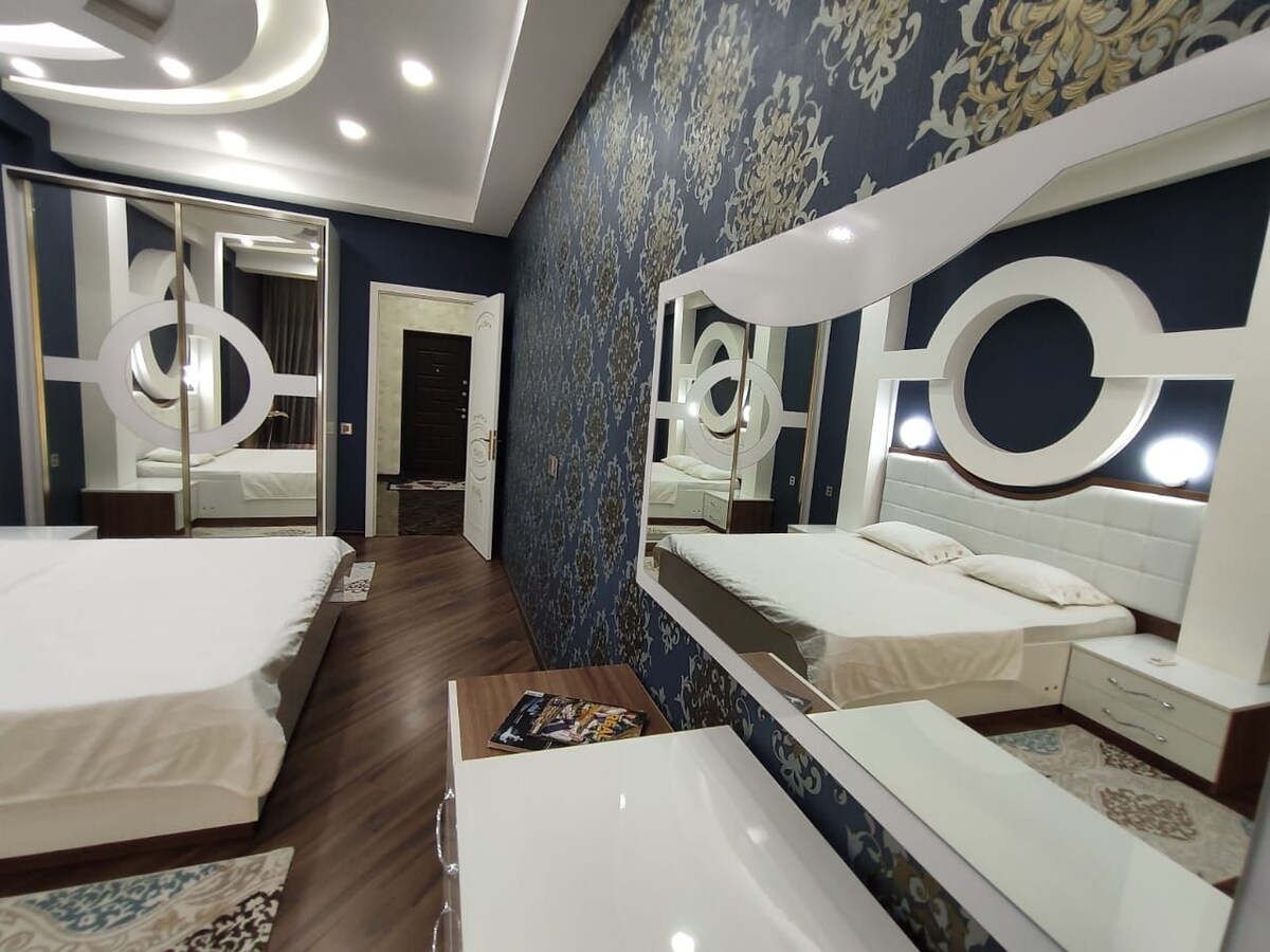 公寓( 17樓-屋頂)位於噴泉廣場( Fountain sq. )和巴庫港( Port Baku )之間。步行10分鐘-噴泉廣場( Fountain Square )、「5月28日」和「Sahil」地鐵 提供免費Wi-Fi !傍晚(凌晨2: 00至早上7: 00 )的水泵由政府部門關閉。 因此,在這段提到的時期,水會停止。 修復完畢後,我會更新備註 !一間臥室有空調,另一間臥室有Stadler Peter風扇。客廳也有空調