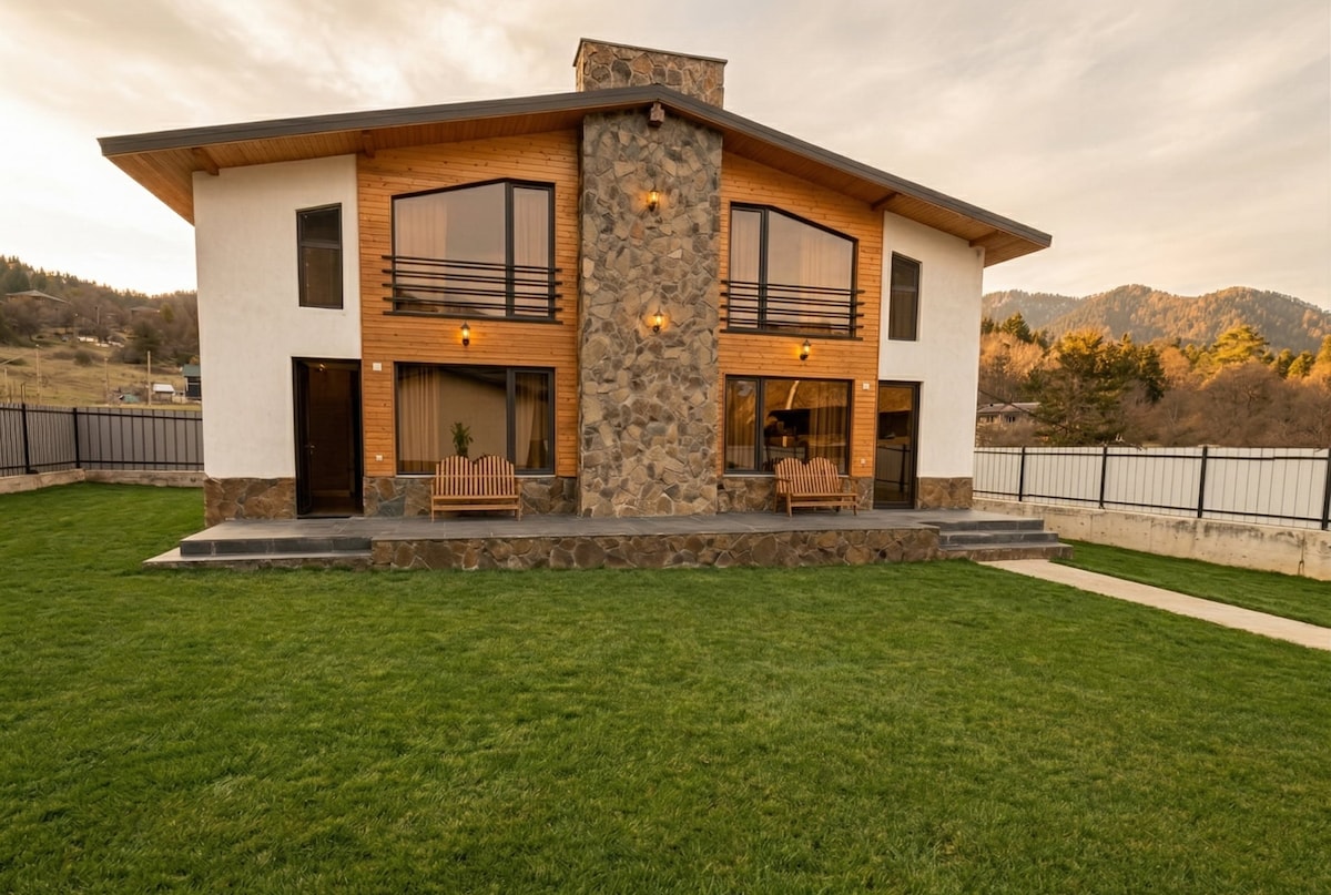 Villa Bayern, located in Bakuriani, can host up to 12 guests and offers breathtaking views of the mountains and forest, making it a quiet and relaxing place. Fully equipped for your family and friends to enjoy, it boasts views of all ski slopes, fresh mountain air, and free bikes. Additionally, we provide free and secure parking for buses and multiple cars. The nearest bus stop is at Supermarket Nikora, and we are available 24/7.