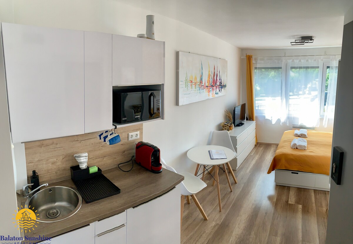 Balaton Sunshine Apartment位於Balatonföldvár ,位於中心位置,距離巴拉頓湖500米。 度假屋設有空調、禁止吸煙、1間臥室(床單、毛巾、WiFi、電視)、設備齊全的小廚房(1個電爐、微波爐、雪櫃、烤麵包機)和1間浴室/廁所。 旅人可以在屋頂露台或共用戶外泳池旁的日光浴躺椅上放鬆身心。 公寓還有1個私人泊車位和2輛單車。