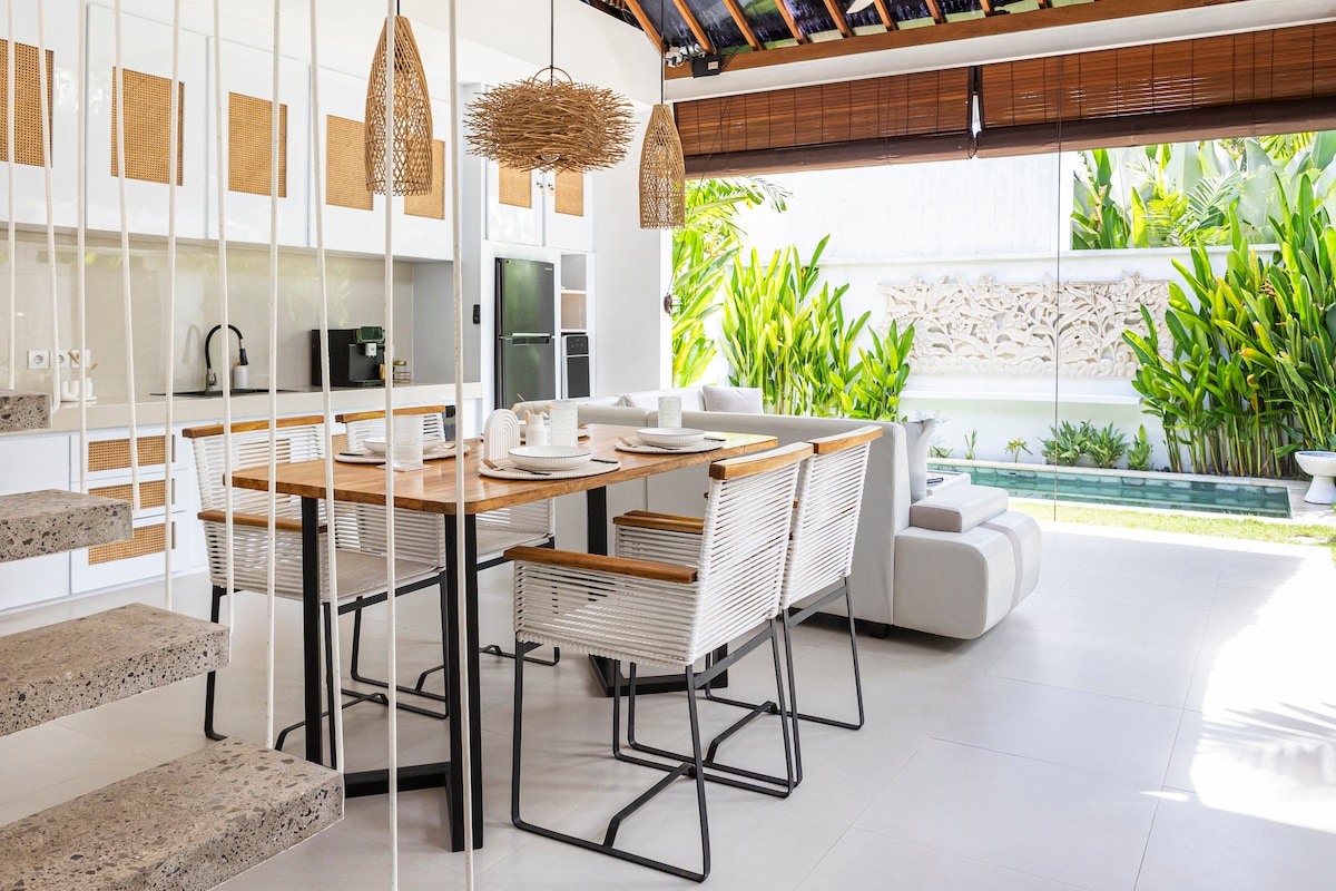 請注意,附近有建築工地! 位於坎古(Canggu)黃金地段的全新別墅 • 2間時尚的空調睡房,可欣賞叢林景觀 • 套房浴室配備設施和吹風機 •辦公桌、保險箱和熨衣設施 •巨大的私人泳池和花園,可供休息或燒烤 • 200 Mbps Wi-Fi,適合遠程工作和串流 • Netflix、PS5、嬰兒設施和燒烤架(應要求提供) •每日客房清潔服務,提供乾淨毛巾和牀單 • 從電單車租賃到水療預訂的禮賓服務