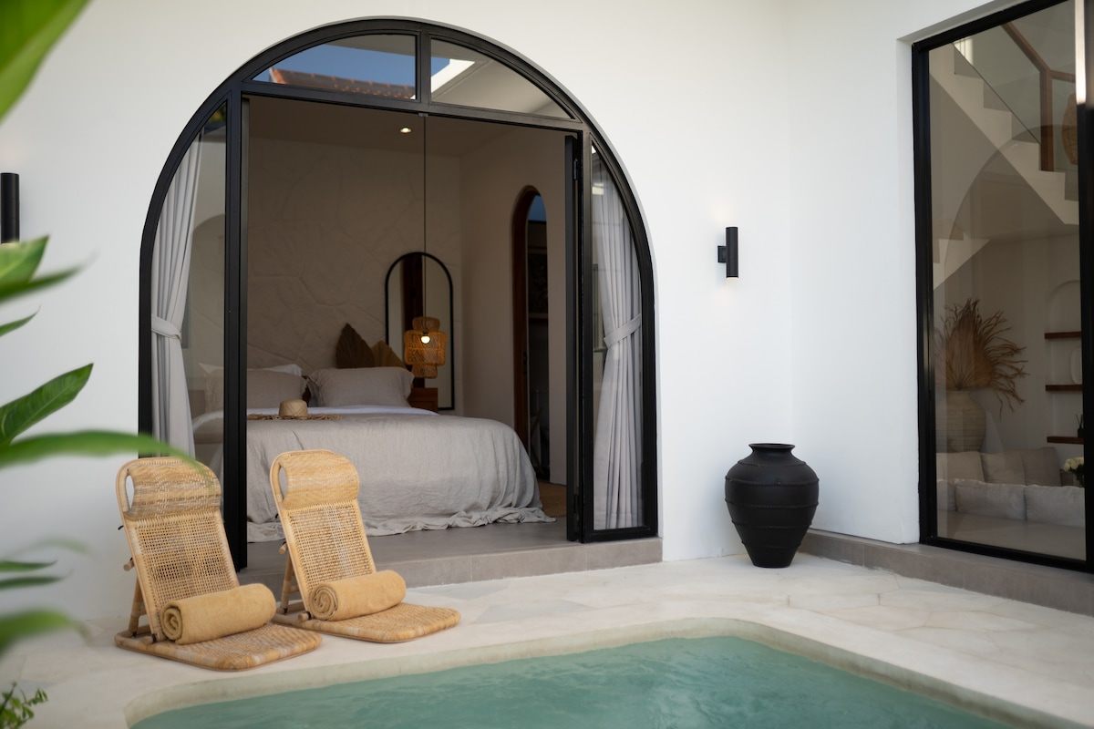 Escape to our Brand New 1 BR villa with private pool in superb location in the heart of Canggu, This is the perfect villa for couples or solo travelers who loves to explore famous spot in Canggu. Just 3-5 walk to great Restaurant, Shop, Gym, CoWorking, Pilates, cafes & Bars. It is just few minutes from famous beaches like Nelayan, Batu Bolong, Canggu Beach, This villa features a luxurious king bed, ensuite bathroom, kitchen, pool, living room, and open living spaces to relax by the private pool