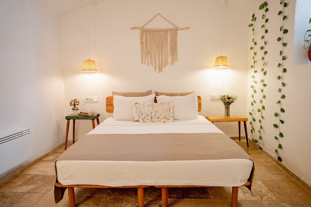 如果你正在尋找一個安靜的社區,我們位於艾瓦利克著名的馬卡龍街🌼 我們的房間將以其完全波西米亞風格為您的優雅增添優雅 🌸 我們距離Ayvalık海灘步行100米,開車15分鐘即可抵達Küçükköy、Cunda島和Sarımsaklı ,靠近我們的周圍 🌿🎈