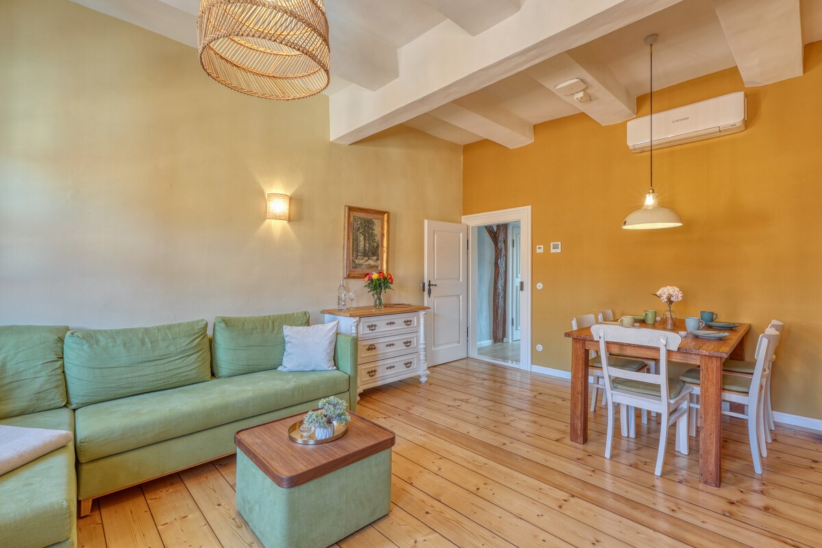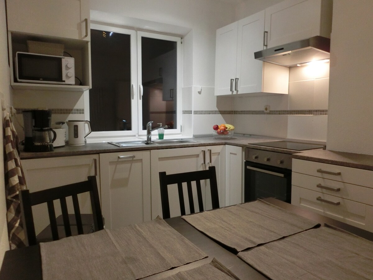 這套公寓位於我們時尚翻新的半木屋中。如果您入住這個位於市中心的住宿,您的家人附近就有所有重要的聯絡點。公寓設有電梯,無障礙出入。 所有房客均可使用健身區 和水療區。 水療中心開放時間:週五和週六 19:00-22:30,其他日期 19:00-22:00(需事先詢問)