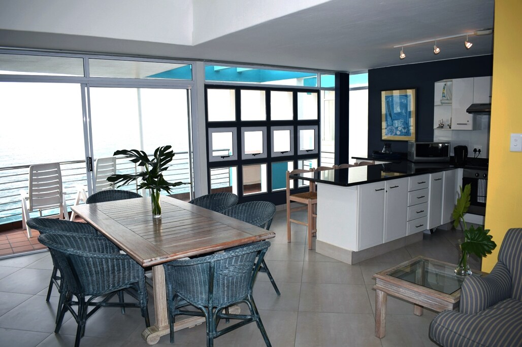 設備齊全的3間臥室全自助公寓,俯瞰有救生員的Bronze Beach,讓您有賓至如歸的感覺。 華麗的海景、寬敞的陽台、令人驚嘆的景觀、全套DSTV、Netflix、無限WiFi、開放式起居區的空調和所有房間的天花板風扇。提供泳池毛巾、浴室和廚房設備。 輕鬆前往海灘,大樓內有一個美麗的大型泳池。 安全的現場停車位和有遮蔽的停車位。24小時保全。
