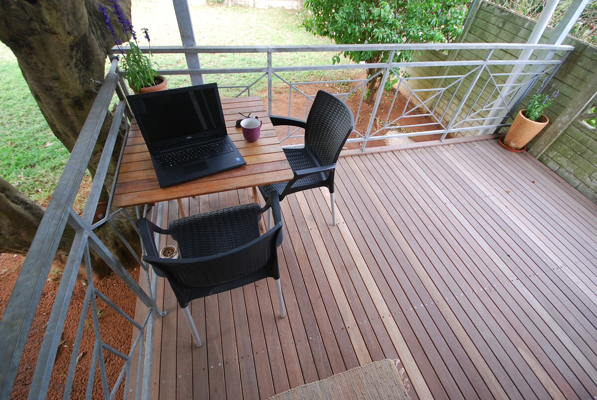 我們位於安靜、出入受控的死巷,距離Westville中心幾分鐘路程,俯瞰大學校園和美麗的Palmiet自然保護區。 開車30分鐘即可抵達德班國際機場,距離德班海灘只有12公里。私密且安靜,有自己的入口和停車位。在大多數情況下,逆變器太陽能備份負載棚的影響在很大程度上被消除了!輕鬆抵達M13和N3。 很遺憾,不適合舉辦社交活動和派對。