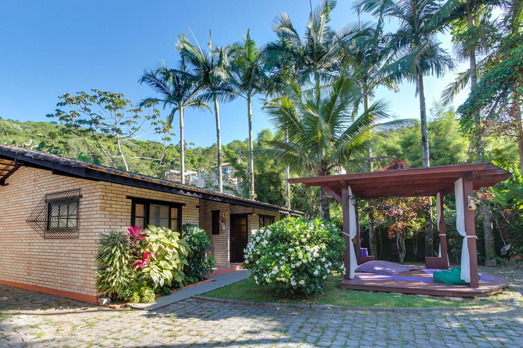 靠近大自然和海灘的舒適🏡Chalés –歡迎寵物入住! 寬敞舒適的房子,最多可容納6人,距離Estaleiro海灘5分鐘,距離巴西市中心20分鐘。 有2間睡房、有雙人床的大客廳、全功能廚房、冷氣、Wi-Fi、私人燒烤和2個停車位。 非常適合與家人一起在大西洋森林中享受,設有花園、休息室和火坑。 一切都是為了讓你放鬆,感覺賓至如歸。