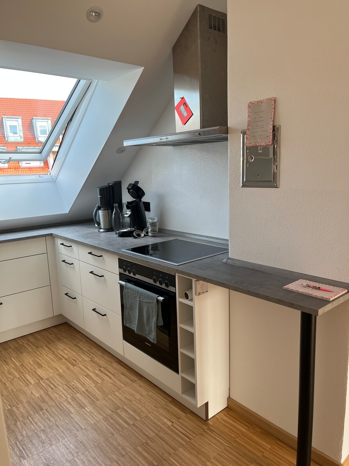 Modernes, neu renoviertes, ruhiges und komplett ausgestattetes Einzimmer-Apartment in sehr guter Lage. Zusätzlich biete ich zwei Fahrräder an, die von Euch kostenlos genutzt werden können. Das Bad ist großflächig und die Küchenzeile vom Schlafbereich abgetrennt. Zu Fuß sind es in die Altstadt nur etwa 15 Minuten, man läuft entspannt am Fluß entlang. Es gibt kostenfreie Parkplätze. In der voll ausgestatteten Küchenzeile sind zwei Platten sowie eine Mikrowelle mit Backfunktion vorhanden.