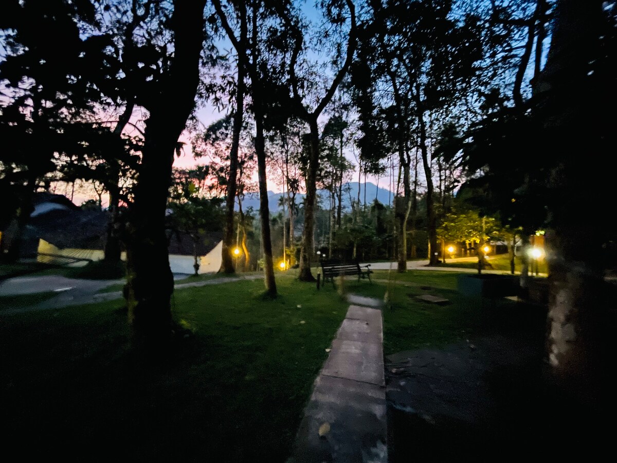Are you looking for a relaxing peaceful stay in nature with a farm life activities experience!! Then it’s perfectly for you… Crafted for couples and families with a waterfall to an open private pool attached to the underground bedroom. Gives a view of greenery of Coffee pepper plantation. Not just stay, it’s an experience Complimentary activities:Kayaking,bamboo rafting, plantation sunset tour,rifle shooting,archery,cycling etc Breakfast is complimentary. No loud music,party&stags group please