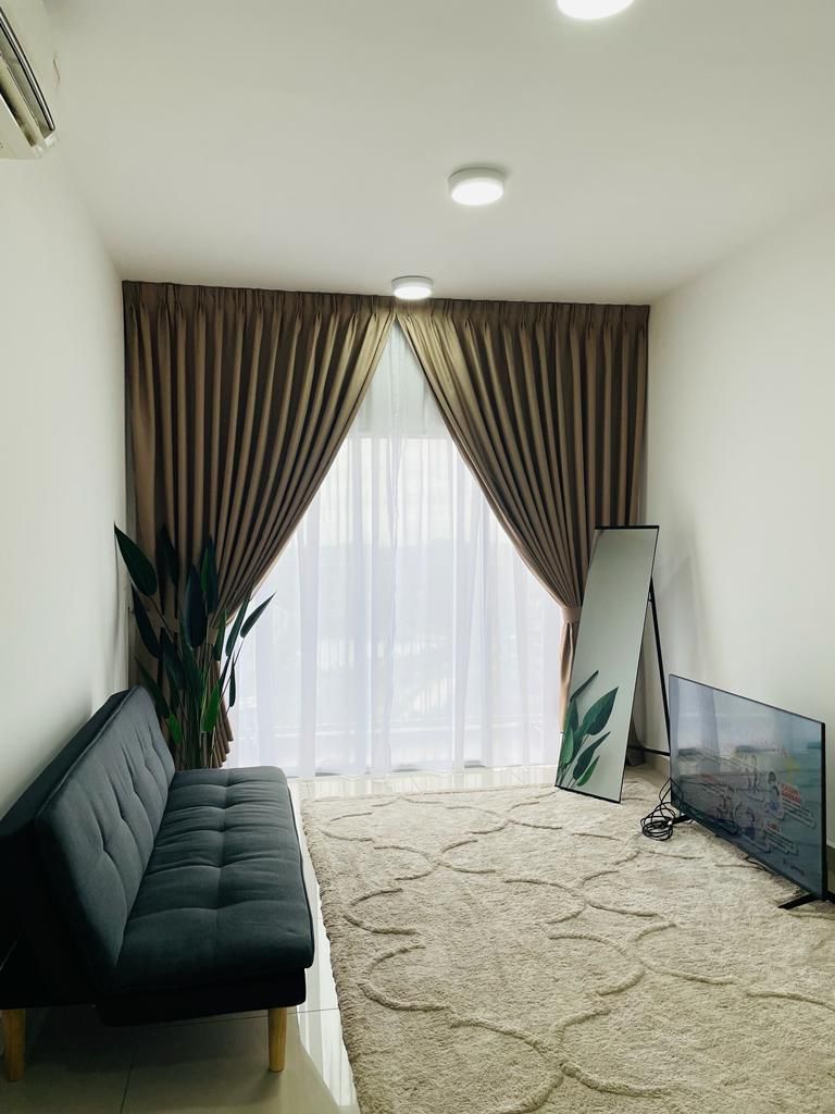 這間1居室極簡單位的室內裝潢令人放鬆,乾淨而現代。 臥室內有一張配有空調的雙人床。 客廳配有舒適的座位、智能電視和快速Wi-Fi。 小型小廚房(配有冰箱、微波爐、水壺和餐具)。 🏙️ 距離KLIA僅10分鐘,距離三井奧特萊斯公園僅5分鐘,配備游泳池、健身室和24小時保安等建築設施,是您理想的中轉站或短期城市度假勝地。