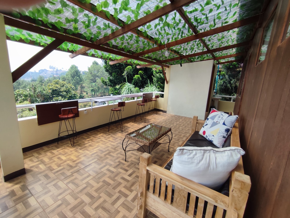 A villa with a cool feel and 180 degree views of Bandung city. With the Menado wooden house concept, holidays with family will be very comfortable. We provide a BBQ grill and campfire as well as a beautiful garden. 3 Bedrooms consisting of: 1 Room 1 Queen Bed 1 Room 2 Single Bed 1 Room 1 King Bed We have 5 open spaces to gather or play: - Second Floor Wooden House, - Balcony with Bandung View, - Sitting room (TV Room), - Balcony with garden view, and - Huge garden to walk with or campfire