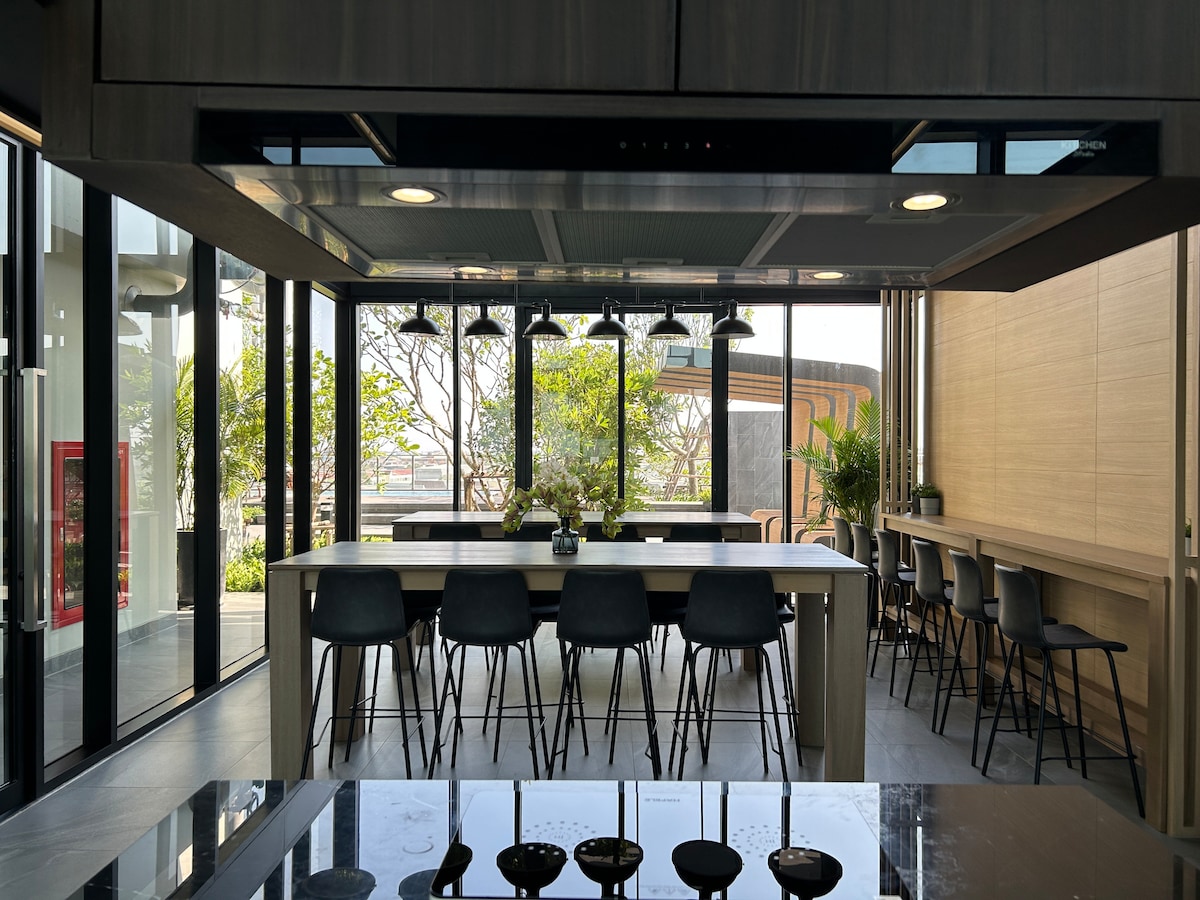 Welcome to The Forest Duplex Retreat – a relaxing nature escape in a quiet green setting. 🍀 The duplex features a bright, high-ceiling living area that feels open and airy. Large glass windows invite natural light and greenery into the space, creating a seamless connection between indoor comfort and outdoor serenity. Imagine wake up to birdsong and soft light filtering through the trees, relax on the soft sofa, work by the window with forest views, or simply enjoy stream your favorite shows.