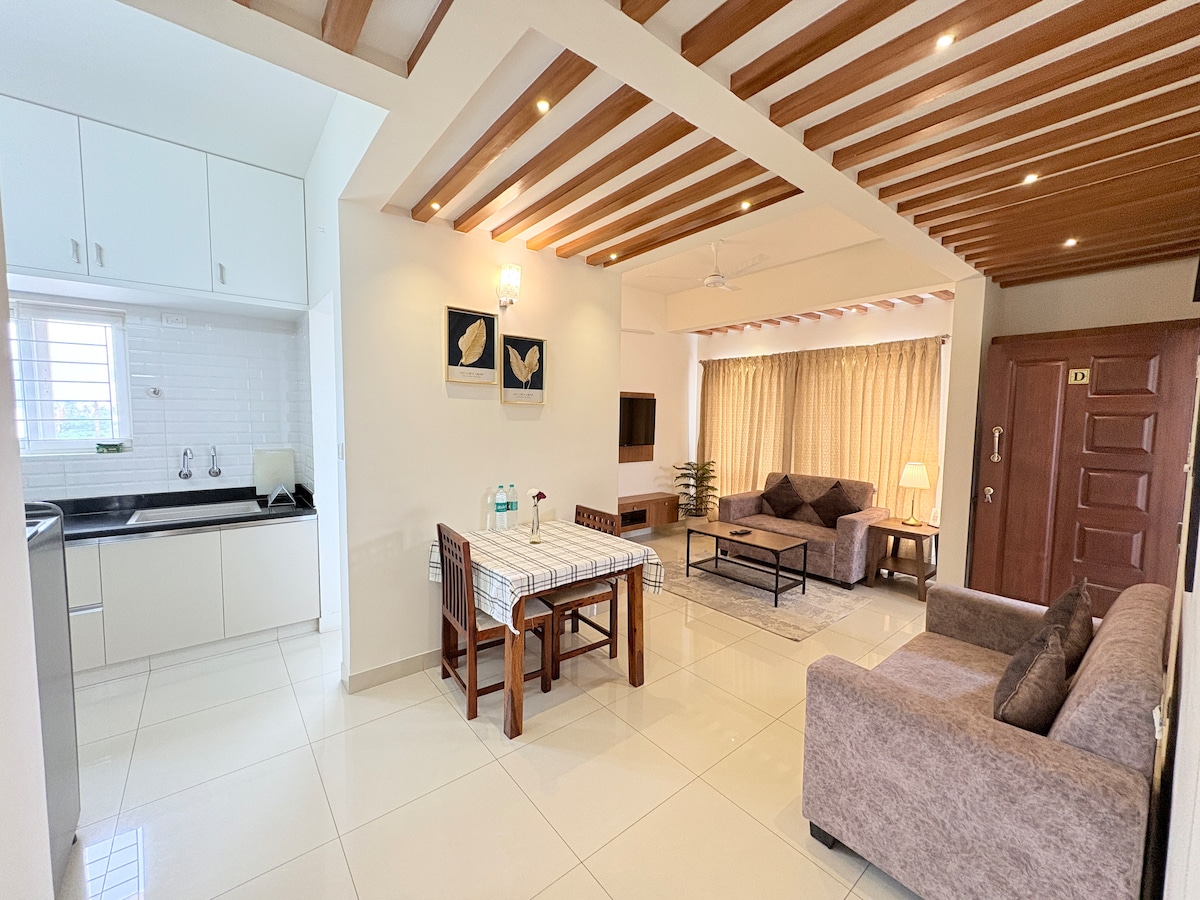 在Manyata & Hebbal附近的時尚2BHK公寓體驗奢華與舒適 歡迎來到我們精心設計的豪華2BHK公寓,高級舒適與現代美學相遇。無論您是來班加羅爾工作、家庭度假或長期住宿,我們的房源都旨在讓您在踏入的那一刻感到放鬆。 我們為提供如家一般溫馨的飯店體驗而感到自豪。每位房客抵達前,我們都會徹底清潔和消毒公寓。
