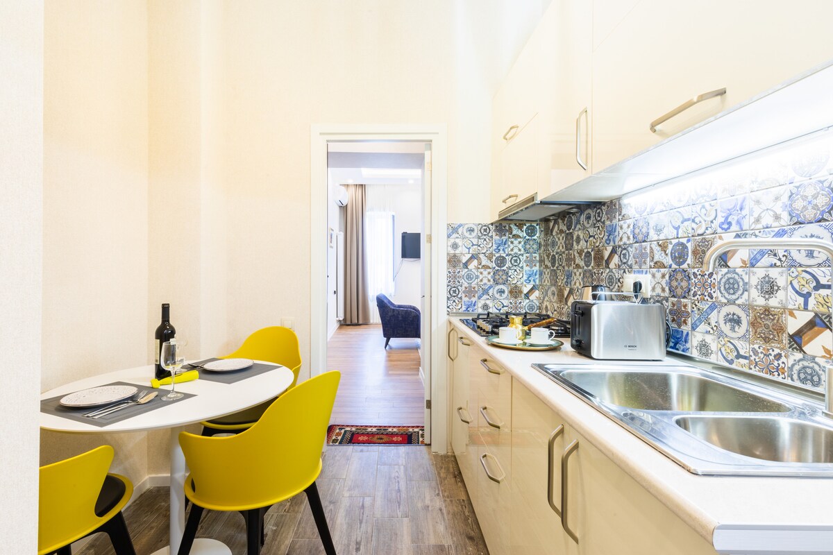 The apartment is located in one of the central, historic districts. You will stay in a typical Georgian old building. The property is studio-style and has a cozy balcony. The house is old but fully renovated and designed by me. The apartment is bright and comfortable, with a full bathroom (4 sq. m) and a kitchen. The apartment offers self check-in. You will receive detailed instructions the day before your arrival, making check-in smooth and easy. I hope you will enjoy your stay. .