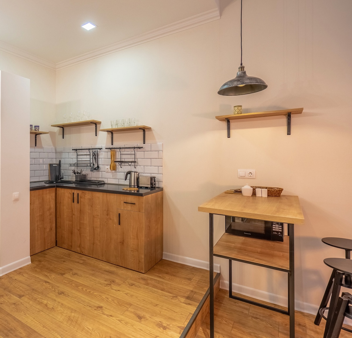 INDUSTRIAL Studio in old soviet building designed by "VIRSTAK", brings unique atmosphere with spectacular day and night CITY VIEW enjoyable from the BATHTUB. -100% HANDMADE. - Not a RANDOM cozy/ functional apartment, Studios amenities consists of old vintage and industrial furniture, for some people might feel uncomfortable out coming from a personal taste. Artistic vibe making you feel like in movies. - WINERY - 9 SORTS of wine - Movie Projector Airport pickup Suzuki Swift 80 Gel