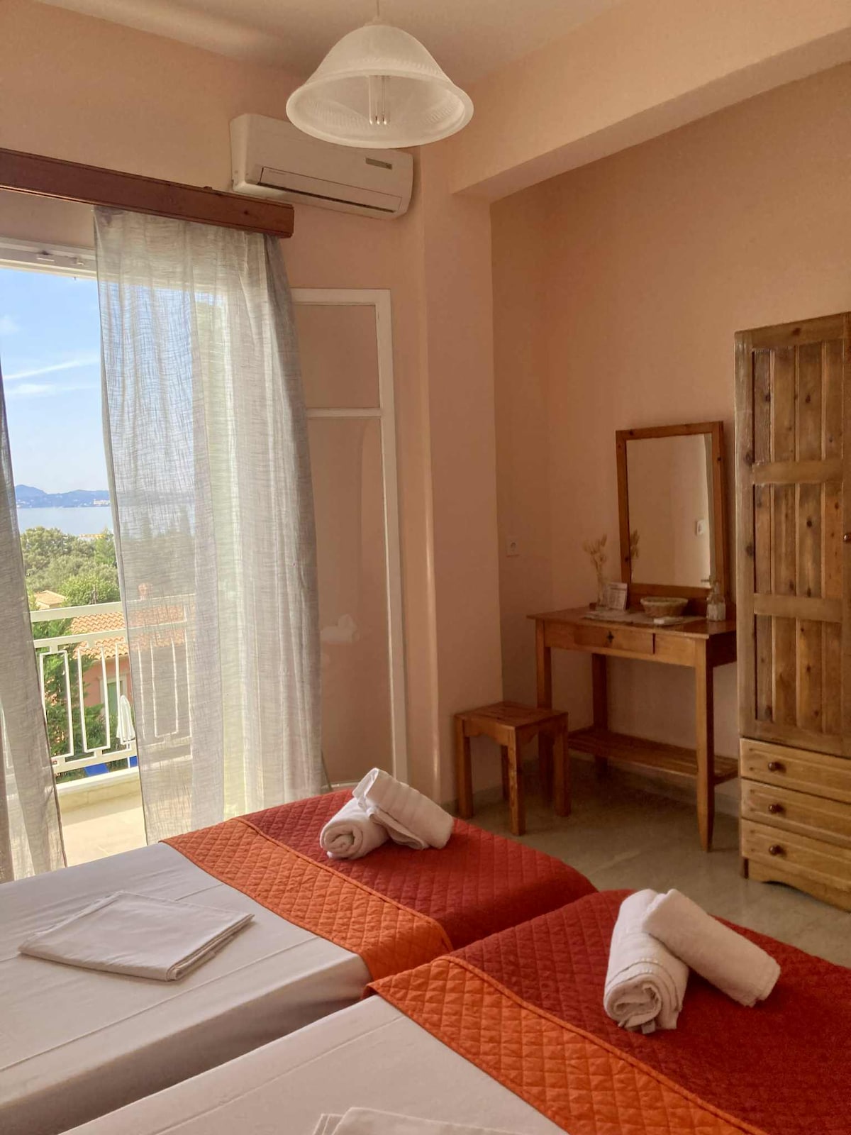 日出海景公寓(Sunrise sea view apartments)擁有壯麗的海景,是享受科孚島(Corfu)綠色島嶼的理想度假屋。日出景觀位於全景位置,距離美麗的巴巴蒂村( Barbati )僅500公尺,有商店、餐廳和美妙的水晶般清澈的海灘,室內有空調,可容納2人。但可俯瞰愛奧尼亞海和Pantokratoras山的美景,每天都能讓您著迷。