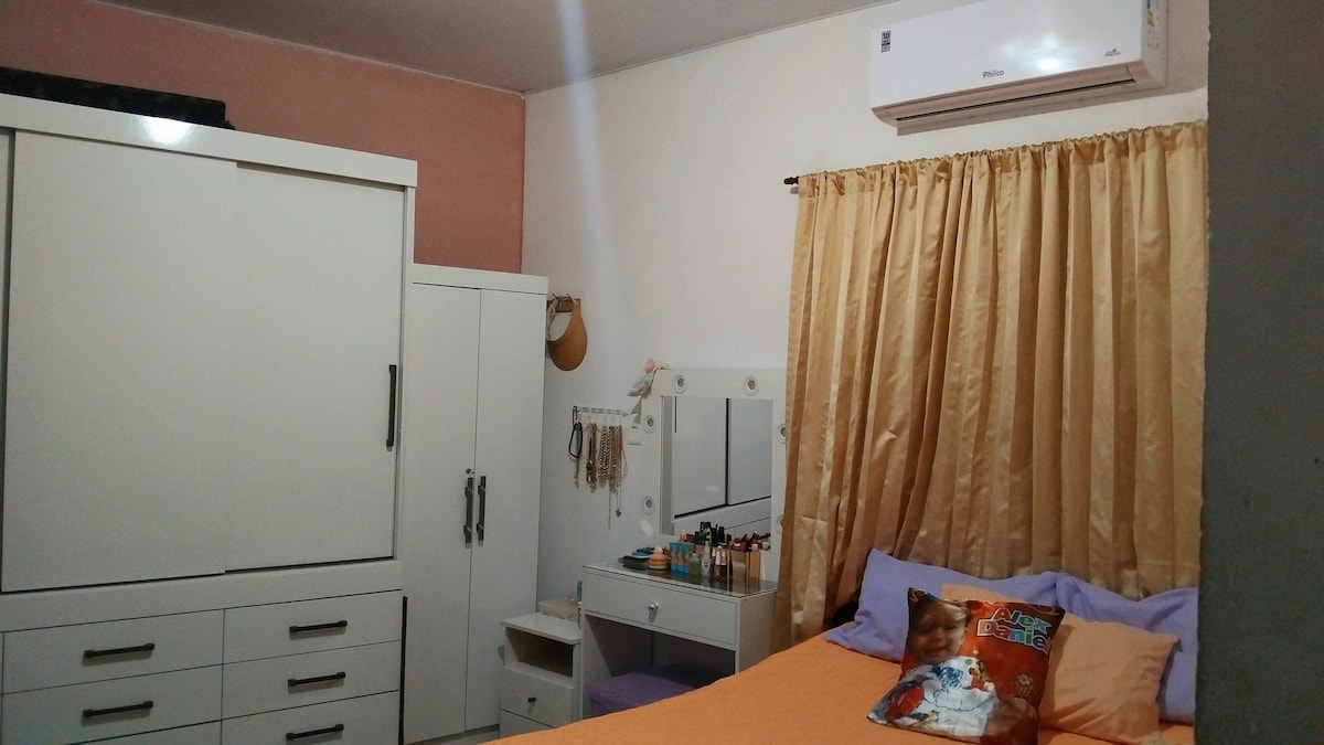 Casa aconchegante na Pedreira. Melhor localização para COP30. Fácil acesso a mercados, restaurantes, bancos, farmácias, padarias, etc. Garagem coberta para dois carros; 01 quarto climatizado com cama de casal e uma bicama (cabendo até 4 pessoas) e armário; 01 banheiro com água quente; Sala de estar e jantar com sofá cama; espaço com mesa para trabalho; Cantinho do café; Jardim com rede para relaxar. Frigobar, cafeteira, sanduicheira, pratos, talheres, xicaras, ventilador, churrasqueira e TV.