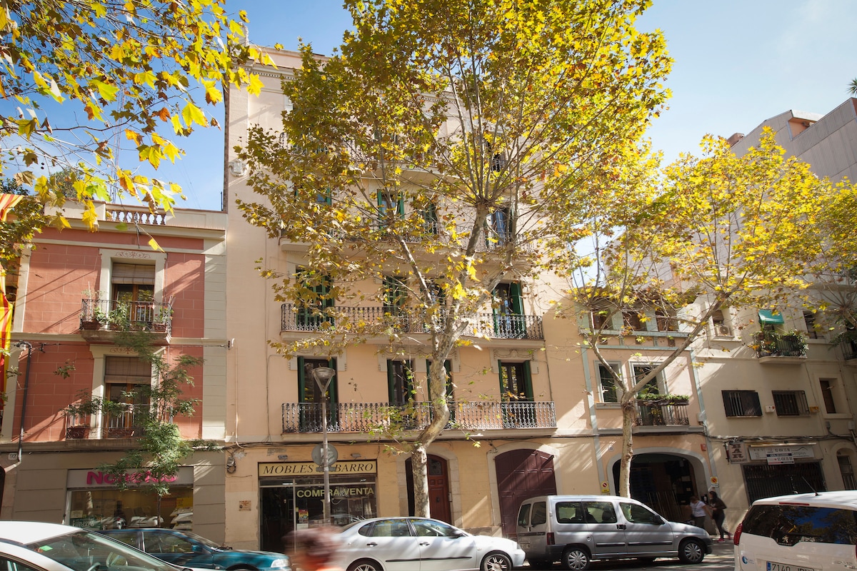 公寓位於Plaza Espanya旁邊。 直達普拉特機場的巴士站,乘坐巴士和地鐵可快速抵達巴塞隆納市中心。 非常適合在Palau Sant Jordi舉辦集市、音樂會和一般旅遊。