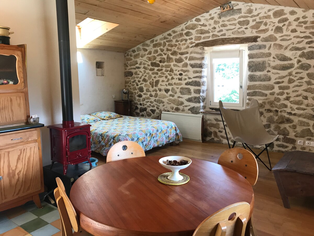 Ce studio de 35 m2 est situé à l’étage d’une petite grange. Il est équipé d’un lit 160, une cuisine équipée et une salle de bain avec baignoire et wc. Situé en marge d’un petit hameau il dispose d’un coin terrasse et d’une vue imprenable sur le Tanargue. L’équipe du NID DANS LA PIERRE
