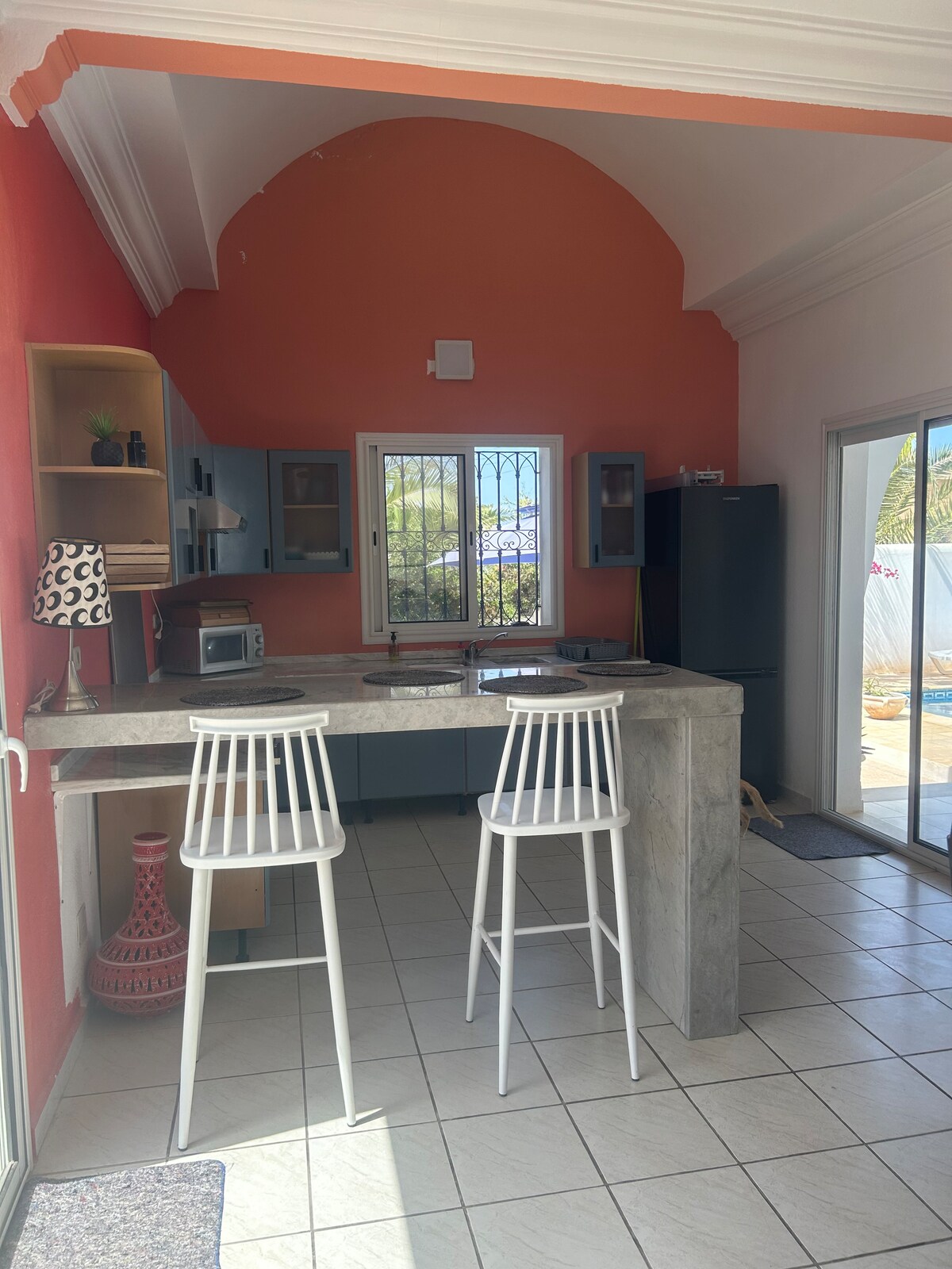 🏝️bienvenue à villa Lamys Djerba 🏝️ magnifique villa avec piscine privée sans vis à vis très bien située dans un quartier calme à 400 mètres de la mer, de la corniche et de la route qui mène à la zone touristique a 10 minutes seulement de la plage, à 5 minutes du centre ville de houmet souk ou ce trouve, le souk, banques, bureaux de change, restaurant, marina, café et sites emblématiques de l’ile. À 15 minutes de L’aéroport à proximité de toute commodité, lieux de détente et d’attraction.