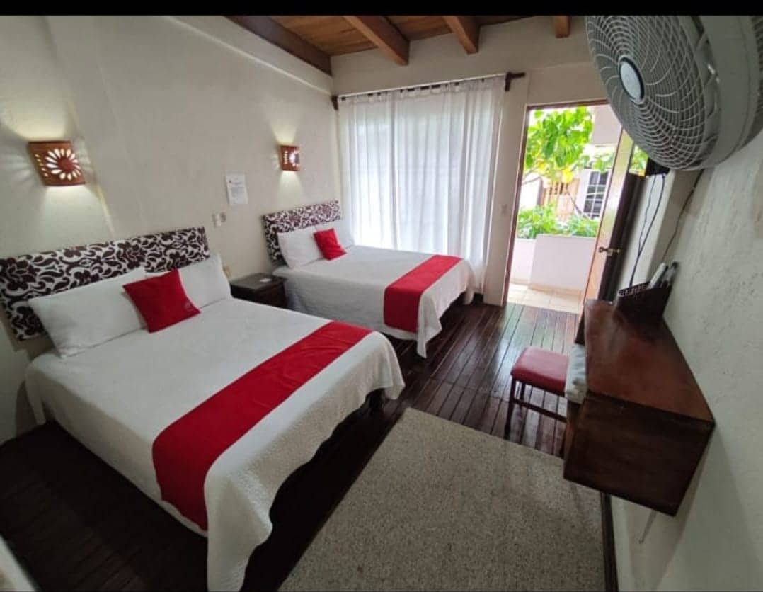 這個空間是一間寬敞的房間,配有兩張1.8米寬雙人牀,梳妝臺配有鏡子,獨立浴室配有寬敞更衣室。 客房位於安靜區域,步行15分鐘即可抵達Zihuatanejo的市中心和海灘。 入口處有一家餐廳,還有一個開放的空間。