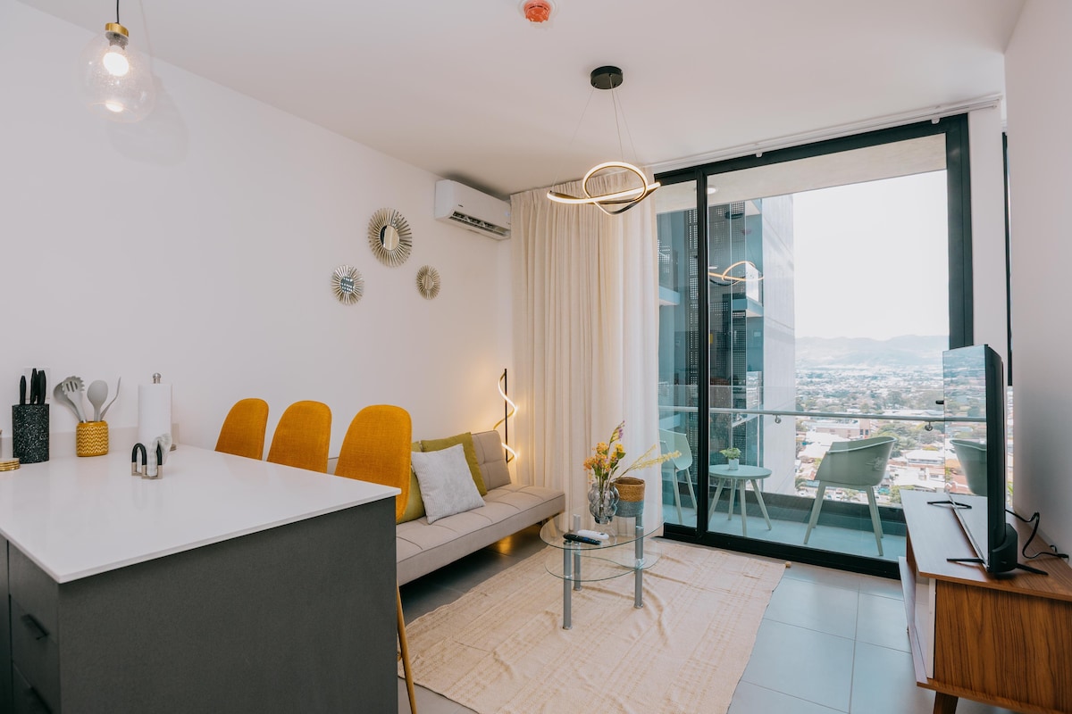 這間華麗舒適的公寓自然光線流過公寓,營造出美妙的氛圍和極佳的氛圍。裝飾充滿愛和品味,並努力考慮您的舒適和寧靜,享受愉快的住宿體驗。 從URBN塔的29樓,您可以白天欣賞城市天際線和山脈的美景,晚上欣賞迷人的日落景觀。 Barrio Escalante是城市的時尚區域,距離國際機場約25分鐘。