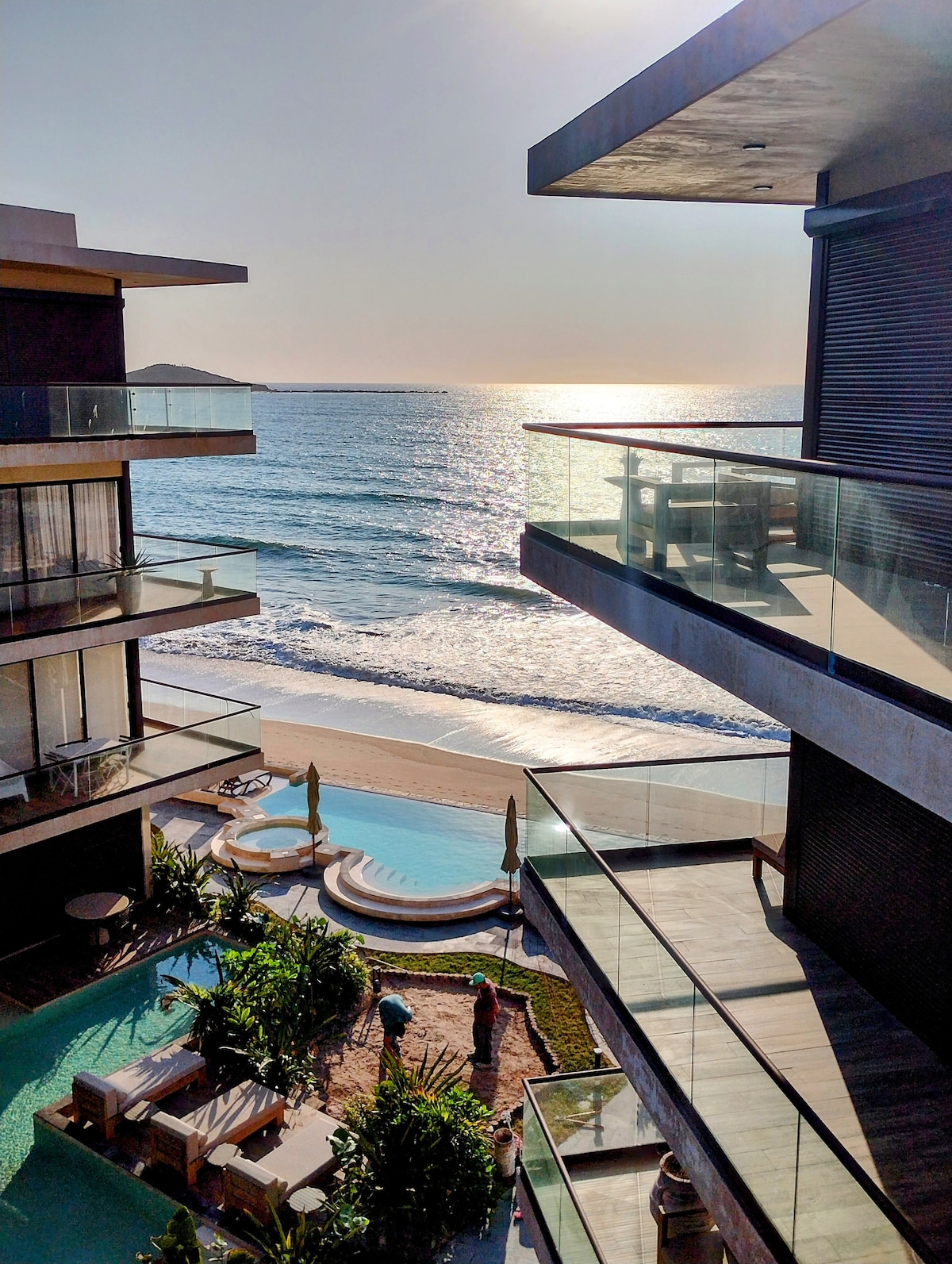 全新寬敞的公寓,位於馬薩特蘭最安靜、最美麗的海灘之一! 冬季的溫水泳池,可欣賞海景,因為您可以使用美好假期所需的一切設備:電梯、設備齊全的廚房、牀、遮陽傘、沙灘毛巾甚至餐廳服務。 這是放鬆身心的理想場所,讓您盡情享受美好時光。