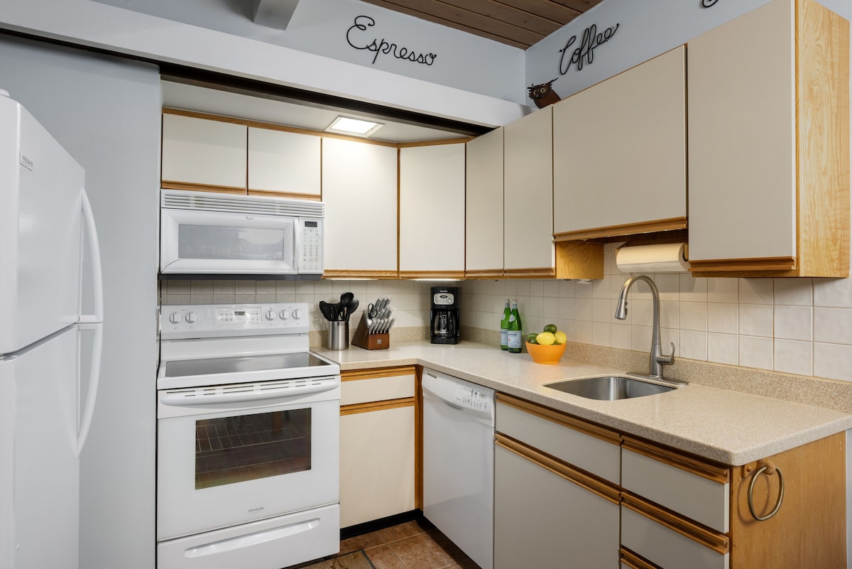 讓這個美麗的Snowmass Village公寓成為您的探險中心或舒適地放鬆。 從建築群或短途穿梭巴士前往滑雪場(也可以穿過橋滑雪),享受自行車/徒步旅行的邊緣小徑。距離阿斯彭20分鐘。 全新翻修。3臺智慧電視。 新家具和寢具。 洗衣機/烘乾機、帶烤架的私人露台、泳池、大按摩浴池、桑拿房、小鎮接駁車、巴士路線、免費停車位、每次租賃一隻狗、令人難以置信的景觀
