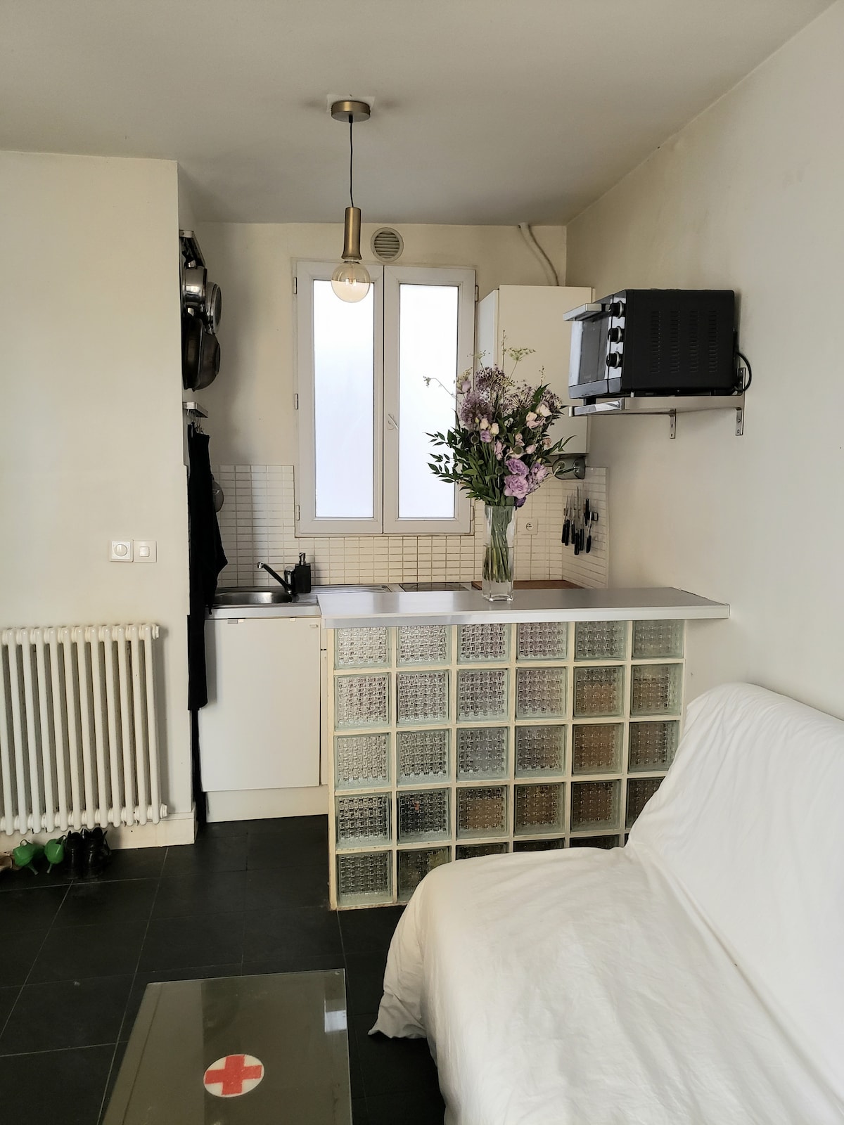 Appartement d'étudiant en art en plein centre du 11ème arrondissement de Paris, très bien desservi (métro Charonne à 200 mètres). Remis à neuf en 2021, bien agencé et équipement moderne. Cuisine complète (four, micro onde, plaques à induction). Canapé lit deux places.