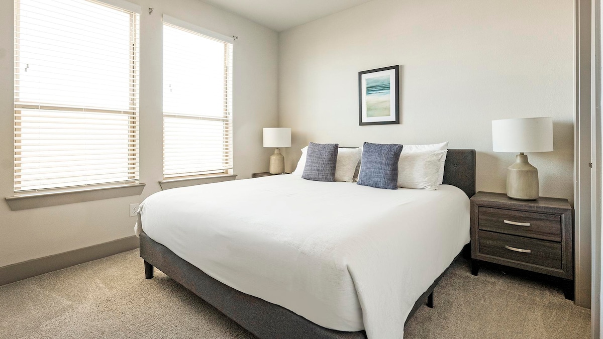 在奧斯汀享受現代舒適的住宿。 這個地方設有時尚的客廳、設備齊全的廚房、配有特大床的主臥室和配有大床的第二間臥室。 旅人亦可使用優質的設施:泳池、健身室和會議室。 距離 Q2 體育場和 The Domain 僅 15 分鐘路程。 非常適合休閒和商務旅程,乾淨整潔,溫馨的氛圍讓你感受像家一般的舒適。