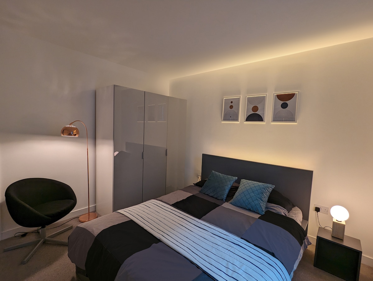 Welcome to my cozy and modern studio apartment, ideal for solo travelers or couples. It features a comfortable double bed, a well equipped kitchenette, and a dedicated work area with Ultra Fast Broadband and sit/stand desk. Large windows provide plenty of natural light. Relax on the sofa and enjoy 50” Samsung Frame TV in the bright, inviting space. Located in a vibrant area with easy access to shops, restaurants, and public transport. Experience the best of city living in this charming studio.