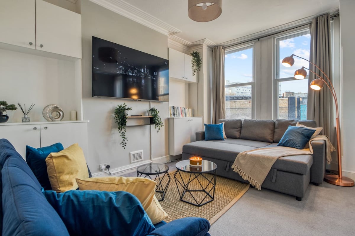 Welcome to my cozy and modern studio apartment, ideal for solo travelers or couples. It features a comfortable double bed, a well equipped kitchenette, and a dedicated work area with Ultra Fast Broadband and sit/stand desk. Large windows provide plenty of natural light. Relax on the sofa and enjoy 50” Samsung Frame TV in the bright, inviting space. Located in a vibrant area with easy access to shops, restaurants, and public transport. Experience the best of city living in this charming studio.