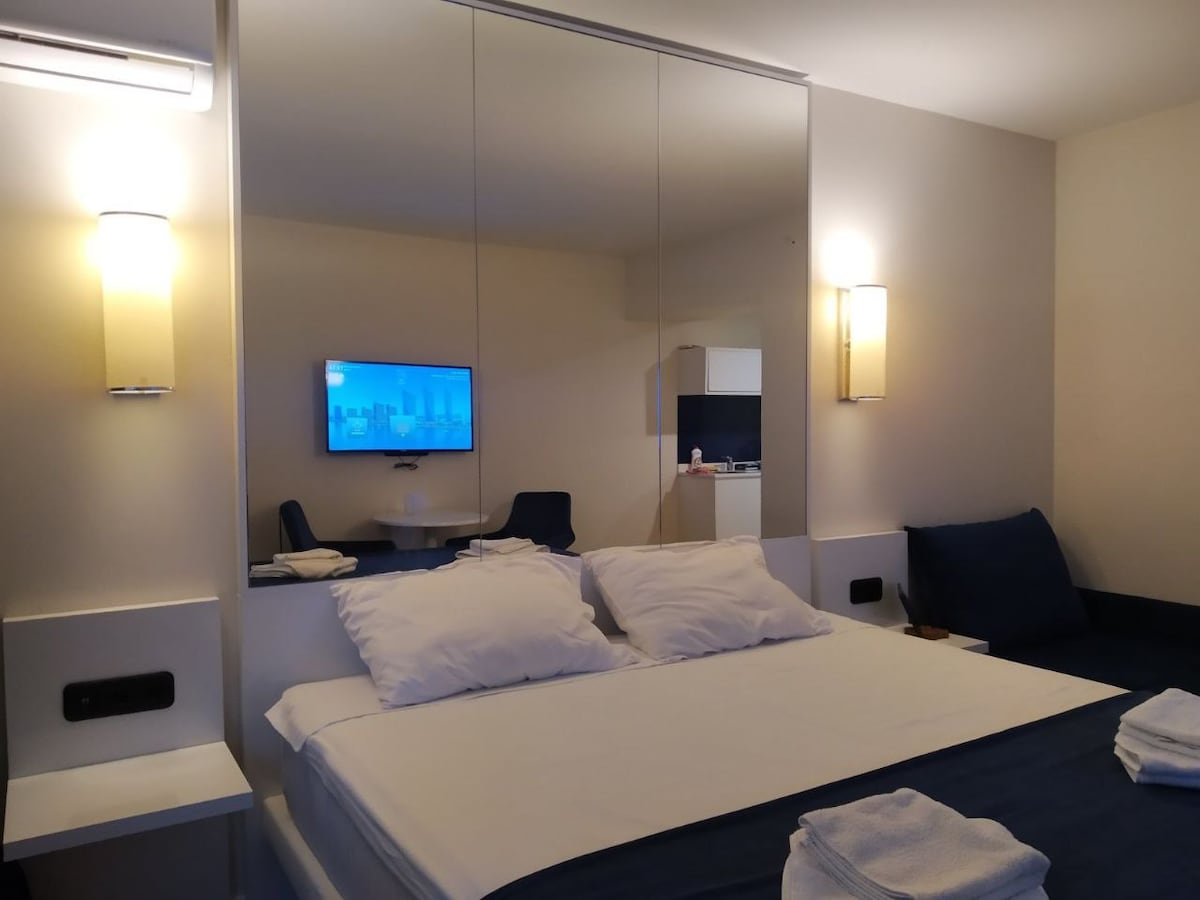 Orbi City位於海邊的第一線,距離海灘僅50公尺。 有一個用餐區域,配有智慧電視。提供免費 WiFi 和空調。 還有廚房,配有微波爐、電水壺和冰箱。我提供乾淨的床單。 海豚館距離1.3公里。 櫃台 24 小時為您提供協助。