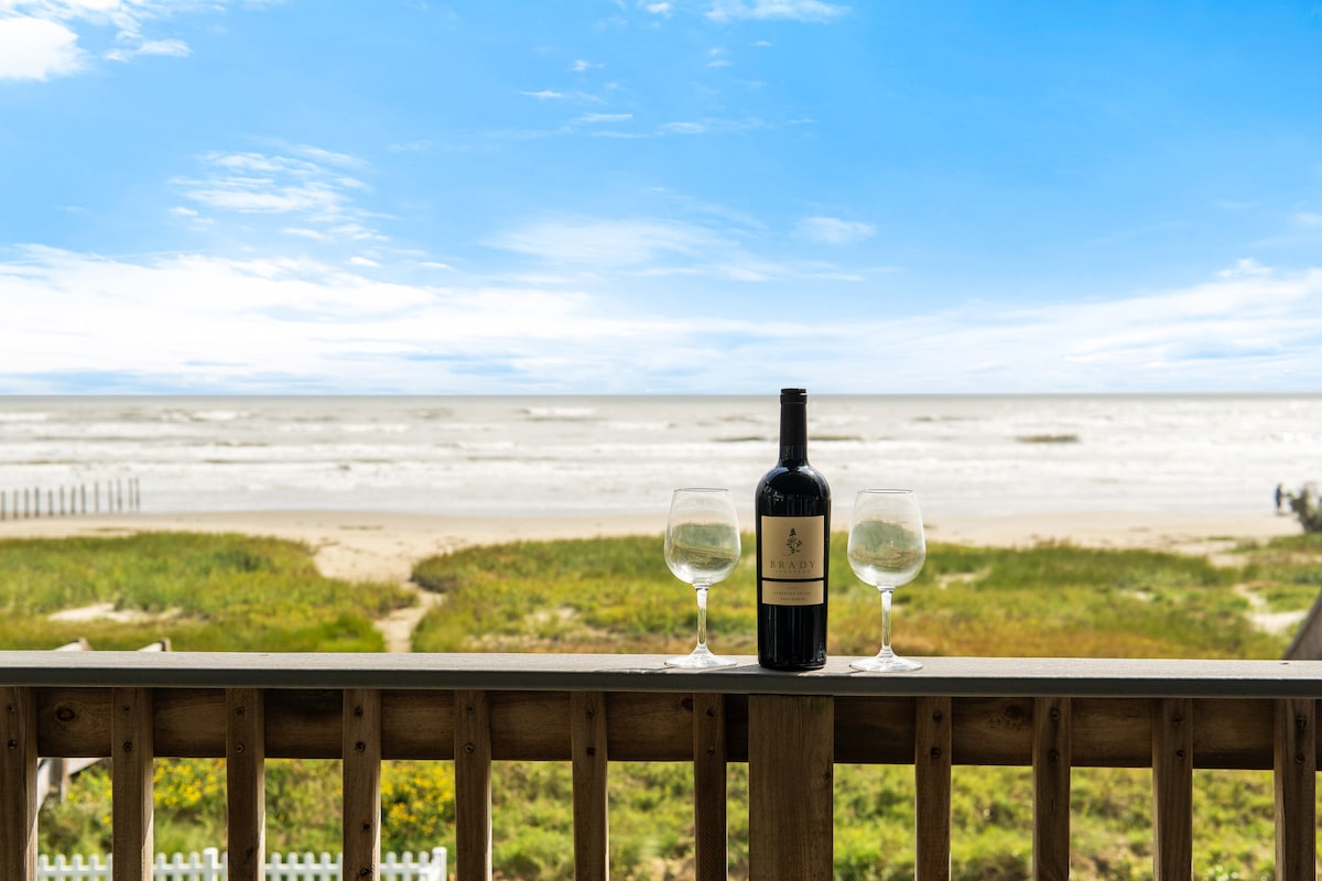 4間臥室、2.5間浴室、可容納8人,3張特大床和1張大床,禁止攜帶寵物。 Beachfront Bliss是一個4BR/2.5BA加爾維斯頓家園,精心維護,配有豪華的傢俬和裝飾,曾在HGTV上亮相。 從您早上醒來的那一刻起,您可以欣賞海灘美景。 當您準備好出門享受沙灘和衝浪時,只需沿著您的私人人行道前往海岸即可。 您一定會喜歡起居室的開放式平面圖和豪華皮革家具,家庭廚師會