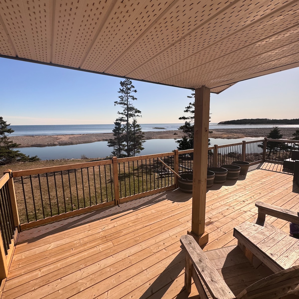 A very calming & relaxing setting in a quaint & welcoming seaside community. Perched on a rise above the Northumberland Straits warm waters, in a peaceful bay with spectacular sunrises & sunsets, ocean fun right off the patio. Enjoy the seals, herons, eagles, humming birds & more. A thoughtful design utilizing local artisan talent, with top line appliances, finishes, amenities, linens & many extras. Ideal for all season fun ATVs ski-doing, ice fishing. All you need is your suitcase!
