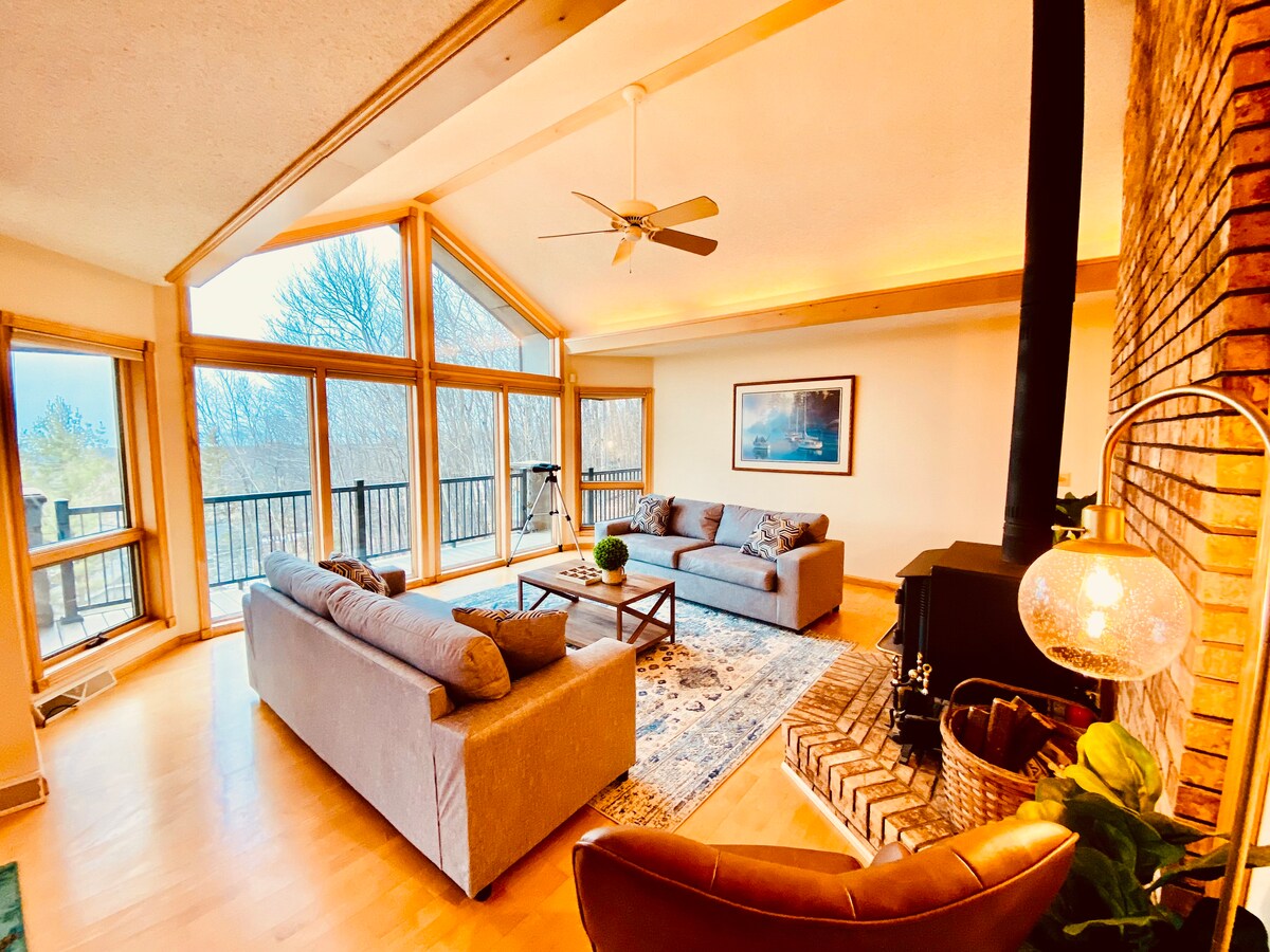 -適合家庭入住的度假屋 -Bayfield山頂度假屋,評價超好! -1.56英畝的私人空間,Madeline Island景觀 -門廊和大型複合露台 -私人死胡同街;充足的停車位 -所有睡房均設有電視 -燃木壁爐 -設備齊全的廚房 -寬敞的主套房 -靠近市中心、碼頭和使徒羣島 -額外休息室,配備紅外線桑拿、65吋電視、懶人沙發和桌上遊戲 -寬敞的主臥室,配有浴室和露臺。