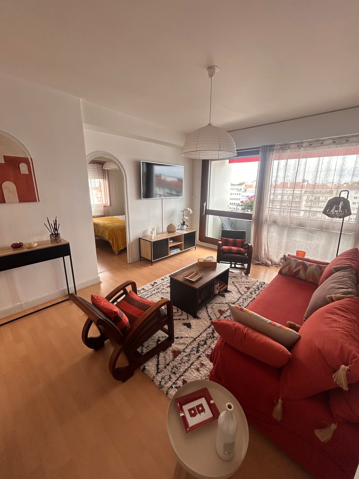 Simplifiez-vous la vie dans ce logement paisible et central. Ce superbe T3 de 70m2 entièrement rénové avec goût vous séduira de suite. Il se trouve dans le quartier des Arènes à 15 minutes à pied du centre du Grand Bayonne, à 15 minutes en voiture des plages d'Anglet. Le linge de maison est maintenant inclus gratuitement . Pour couronner le tout il est loué avec une place de parking privée dans notre garage .