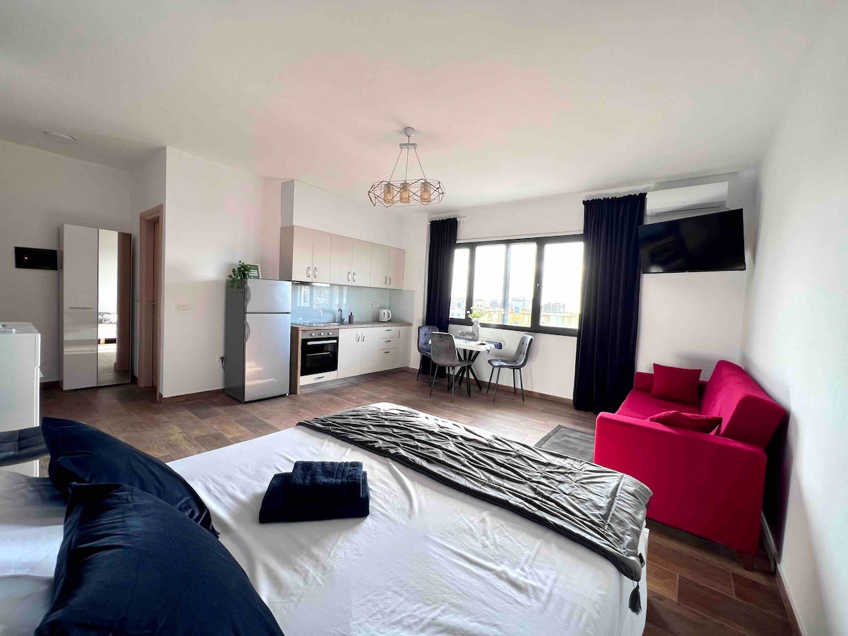 入住我們迷人的三人套房,沉浸在海濱寧靜中。 從舒適的牀上醒來,欣賞令人嘆為觀止的亞得裏亞海景觀,然後在這間現代化的套房中放鬆身心,俯瞰閃閃發光的大海。 享受輕鬆的自助入住和每兩週一次的服務。 需要搭乘電梯嗎?可輕鬆提供私人接送服務。 潛入夢幻般的海濱度假勝地。 我們在Marina Suites的團隊隨時為您服務,在都拉斯提供最佳建議,讓您擁有難忘的住宿體驗。