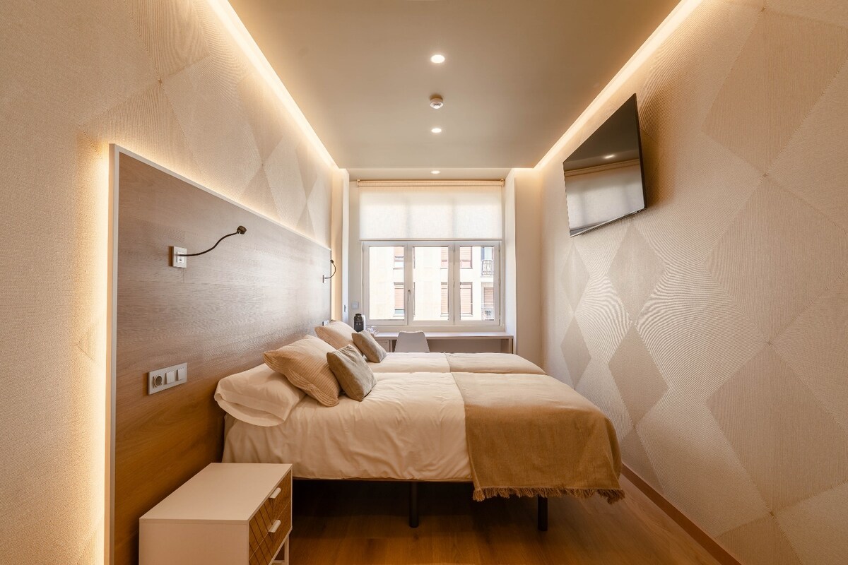 這間舒適的15平方公尺的房間非常適合享受當之無愧的城市假期。 它有一張舒適的150公分雙人牀和獨立浴室,可供獨自或情侶享受。 所有房間均配有衣櫃、迷你冰箱和小書桌,以及咖啡機、輸液和免費水。 設備齊全,讓您在遊覽聖塞巴斯蒂安時感到賓至如歸。